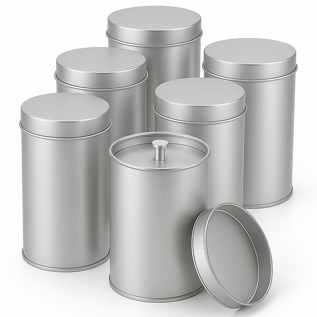 Paquete de 6 recipientes de té con tapas dobles herméticas, recipientes redondos de metal de 12 onzas líquidas, recipientes pequeñ