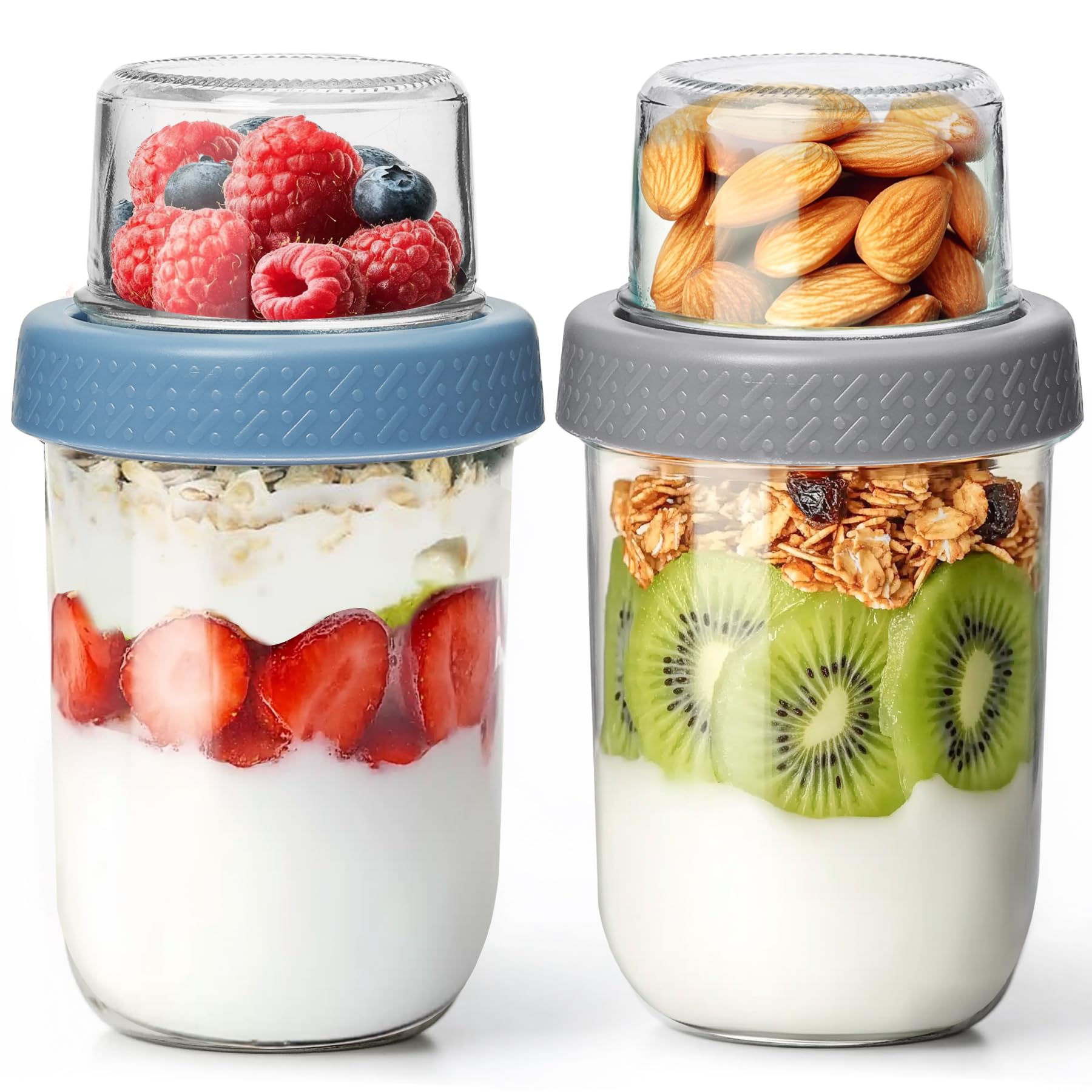 Paquete de 2 recipientes de avena durante la noche de 16 onzas con tapas, preparación de comidas de vidrio de doble capa con separ