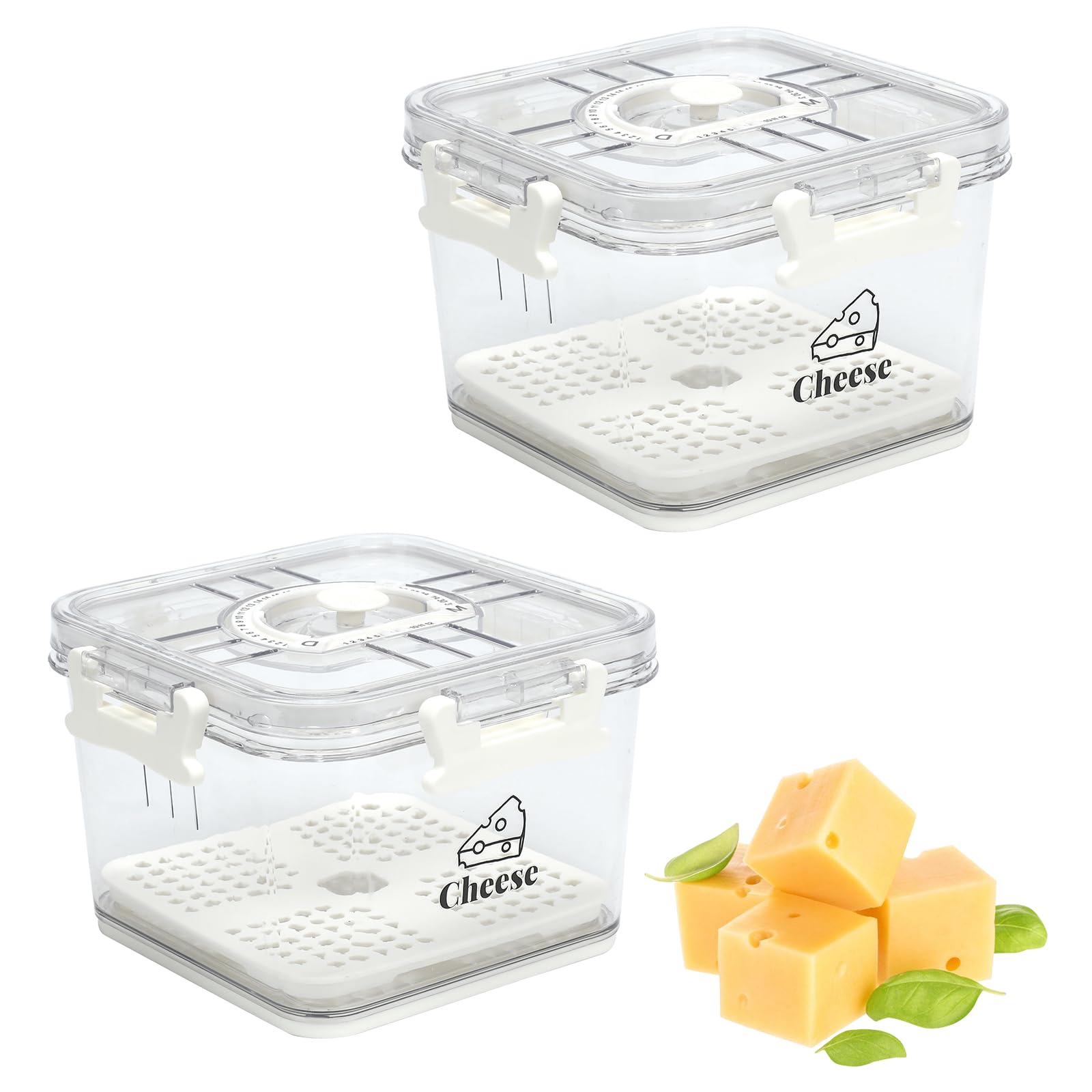 Contenedor de queso para refrigerador, contenedor de queso con tapa hermética y grabación de tiempo, caja de almacenamiento de que