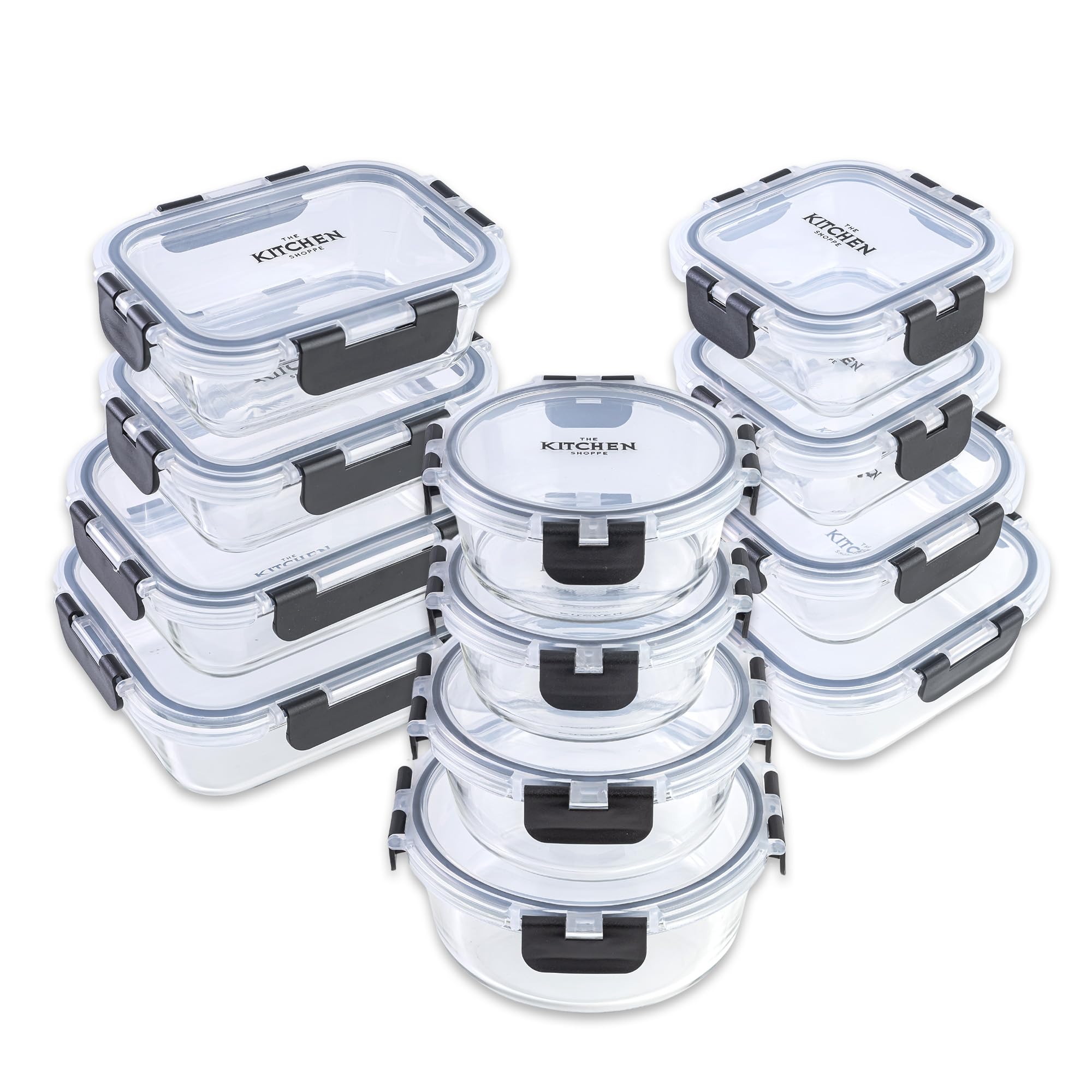 KITCHEN SHOPPE – Recipientes de almacenamiento de alimentos de vidrio borosilicato de 24 piezas, sin BPA, herméticos, reutilizable