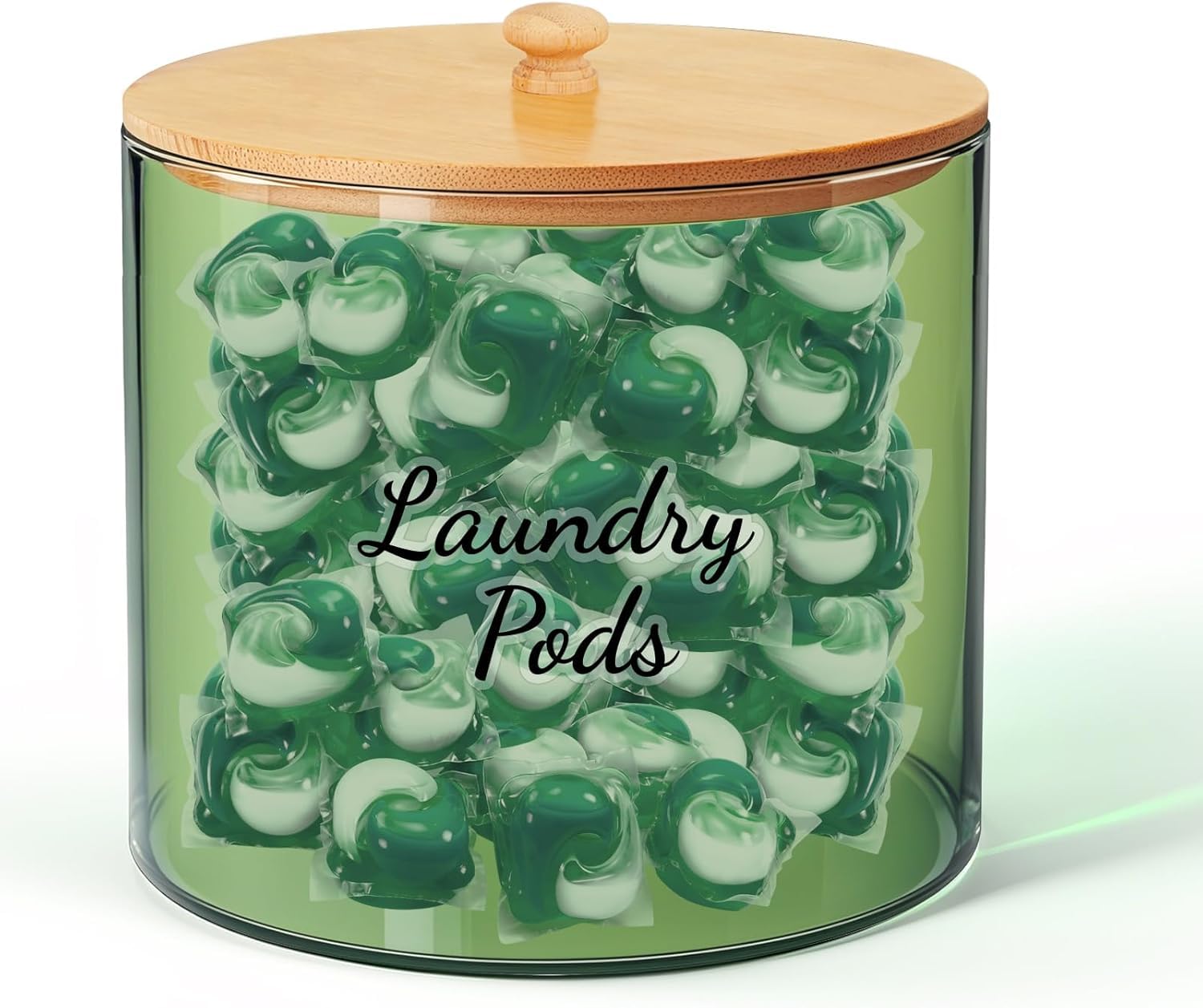 JYPS Recipiente de cápsulas de lavandería de gran capacidad con tapa de bambú, recipientes de detergente en polvo acrílico transpa