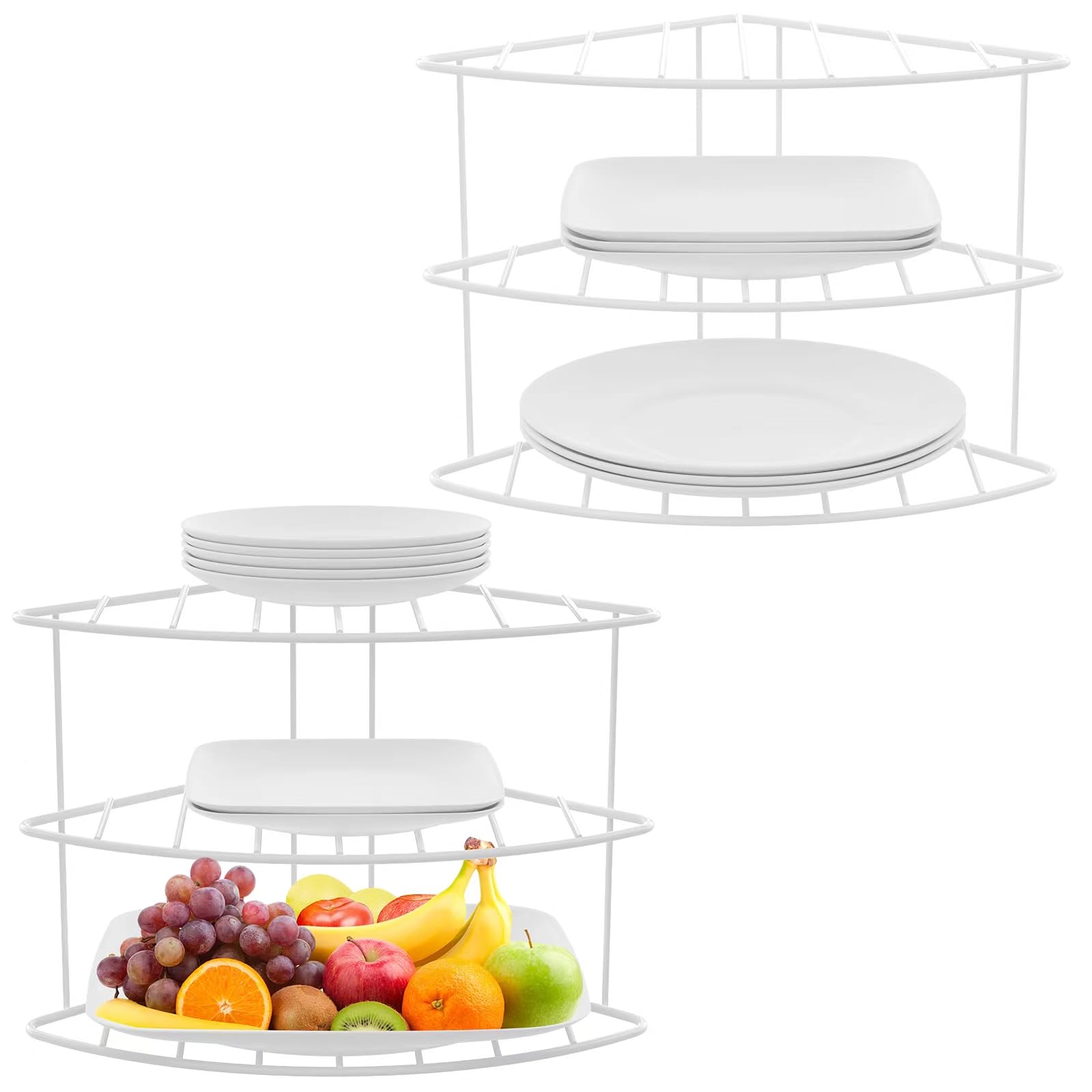 MAGICLULU Estante de almacenamiento de esquina de 2 niveles, organizador de platos para gabinete, estante de esquina, estante de e