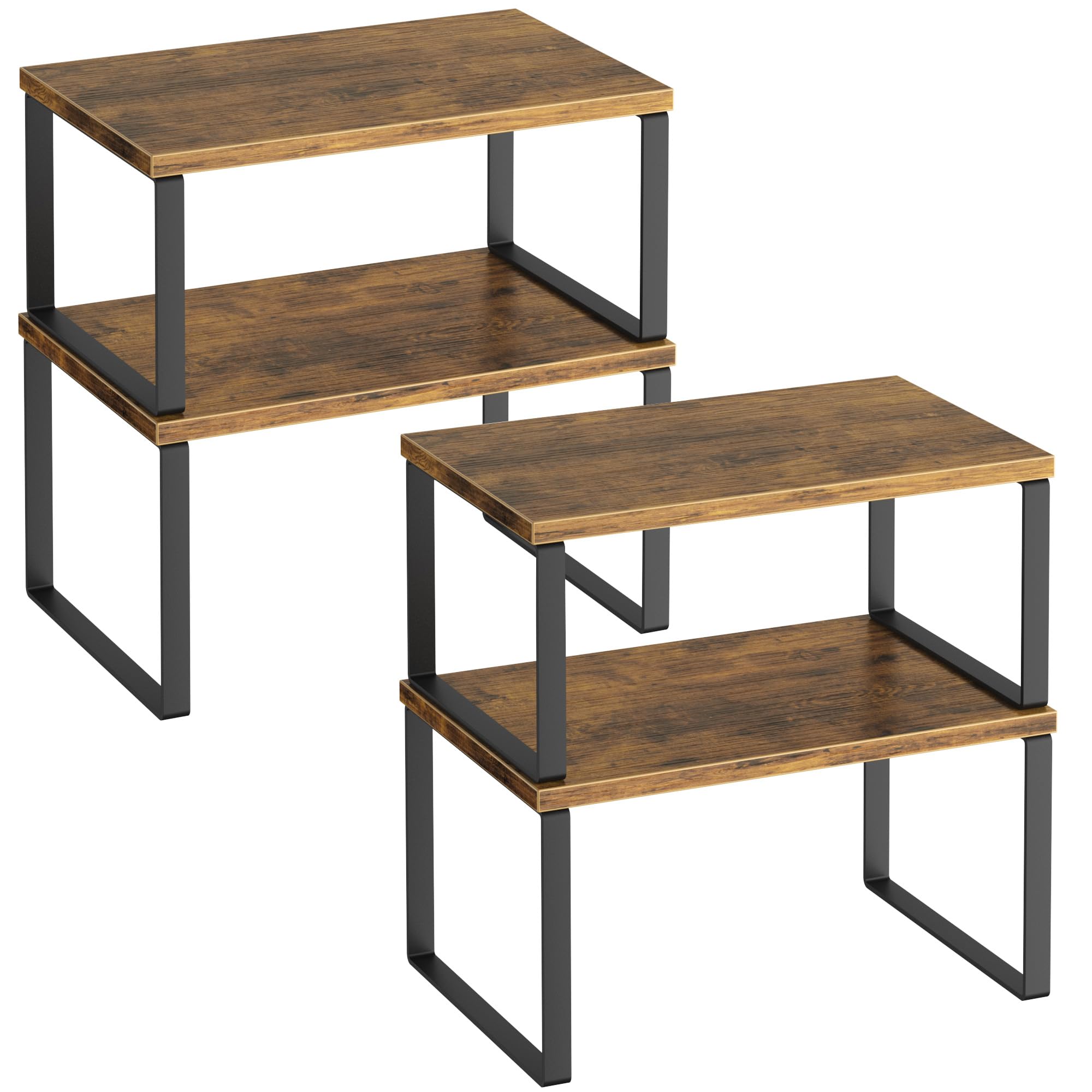 Juego de 4 organizadores de armario de cocina, estante organizador de gabinete, estantes de encimera de cocina, color marrón rústi