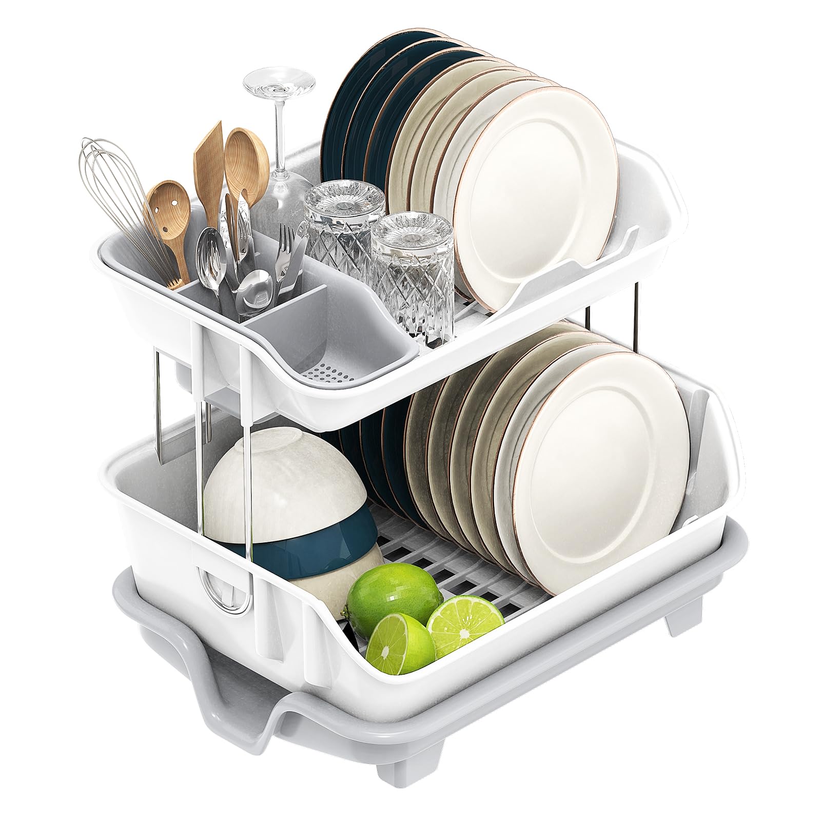 Akalin Escurridor de platos de 2 niveles, escurridor de platos de doble capa para encimera de cocina, estante de secado de platos