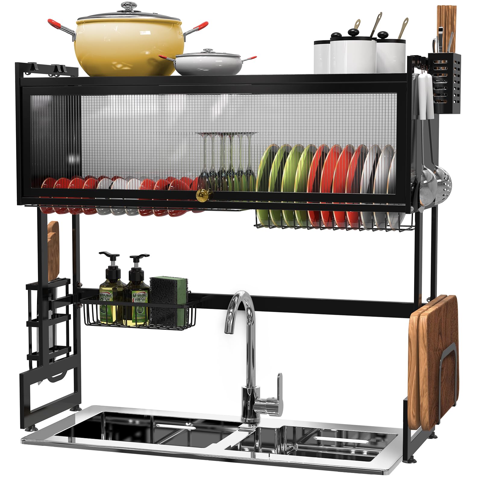 Escurridor de platos sobre el fregadero, 33.5 pulgadas, estante de cocina para encimera de cocina, múltiples platos, almacenamient