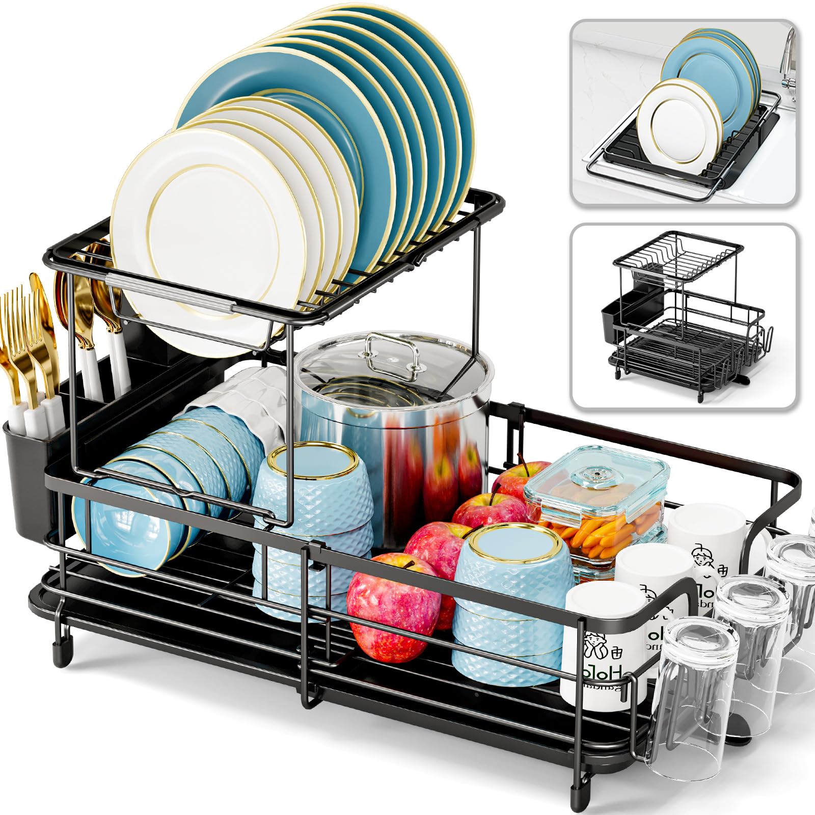 Escurridor de platos de dos niveles, ampliable de 2 niveles para encimera de cocina, escurridor de platos extensible sobre el freg