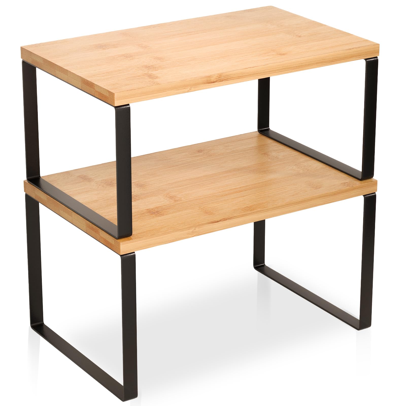 Juego de 2 estantes organizadores de gabinete, estantes de encimera de cocina, apilables y expandibles, estante de especias de bam