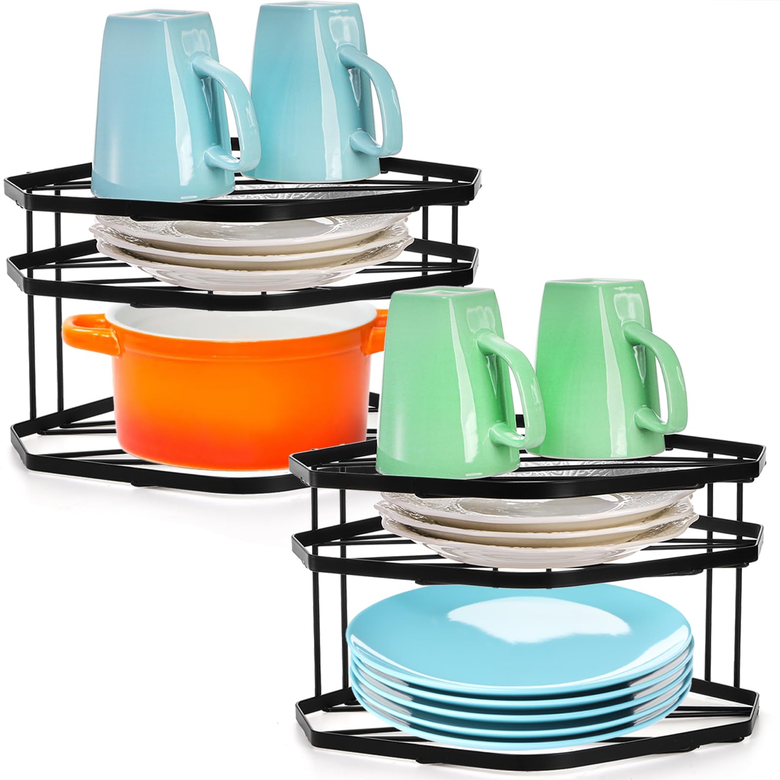 SOUJOY Paquete de 2 estantes de esquina de cocina de 3 niveles, estante organizador de placa de alambre de metal, organizador de g