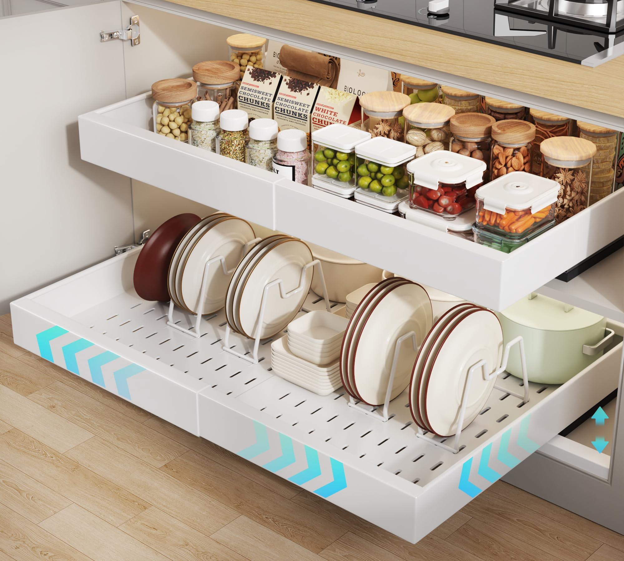 Paquete de 2 organizadores de gabinetes extraíbles de 21 pulgadas de profundidad con almohadilla de elevación para gabinetes enmar