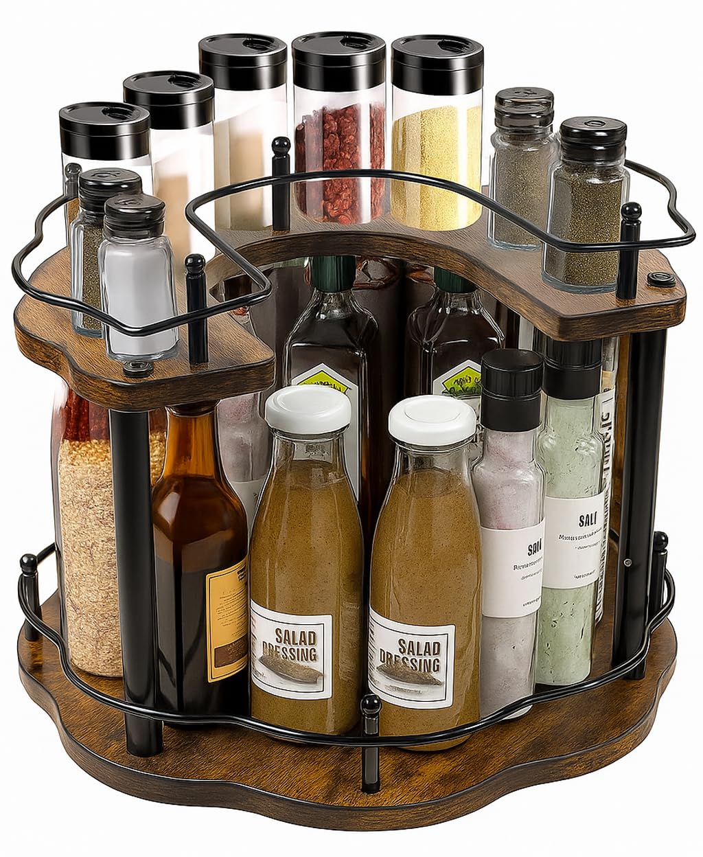 Lazy Susan – Organizador de especias para gabinete, organizador de especias de 2 niveles de altura ajustable para encimera de coci