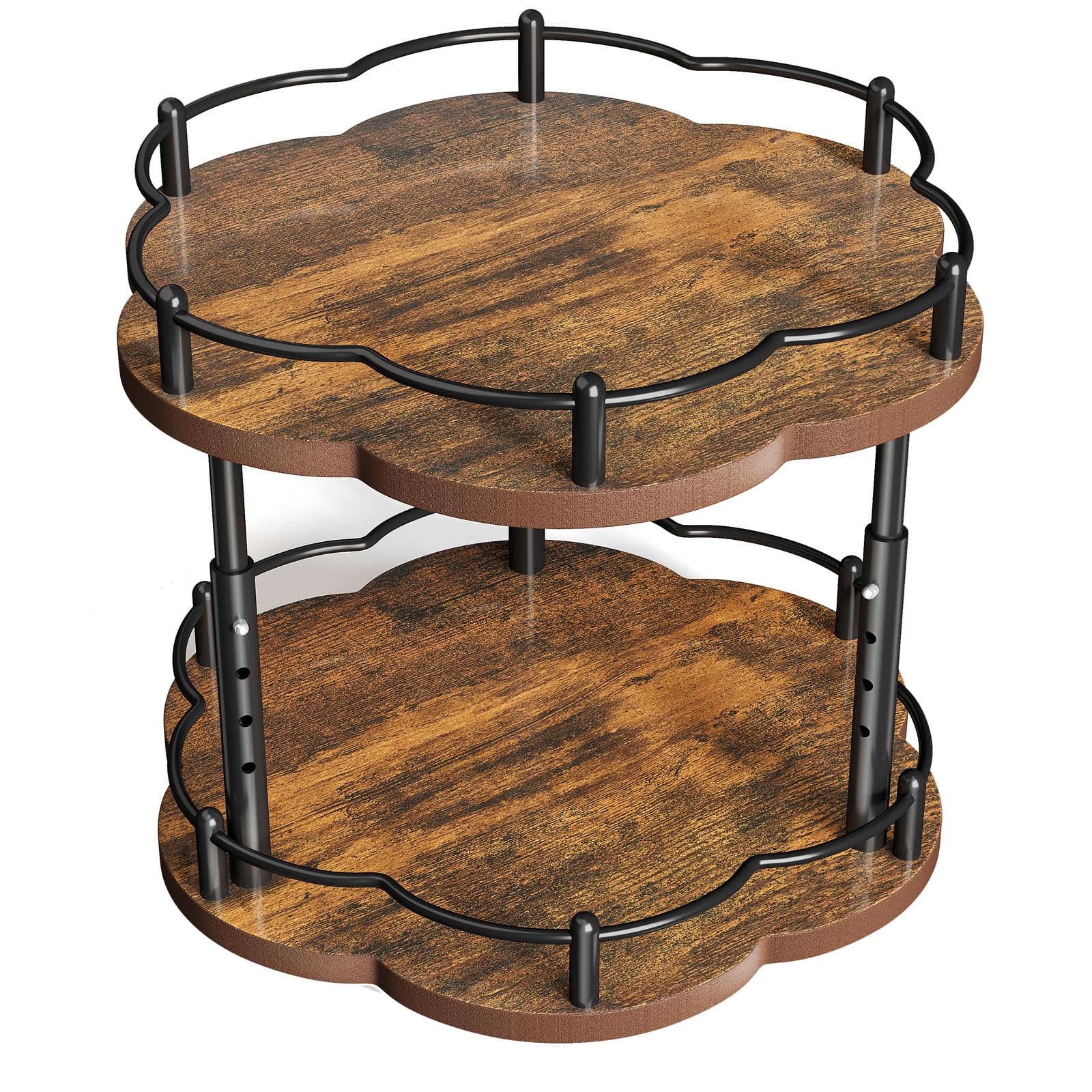 Organizador Lazy Susan de 12 pulgadas con forma de pétalo, 2 niveles, ajustable, giratorio de 360°, estante de madera para especia