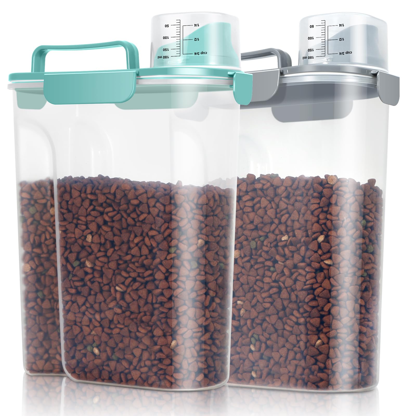 Paquete de 2 contenedores grandes para golosinas para perros de 2 cuartos + 3 cuartos de galón con tapa abatible de una sola presi