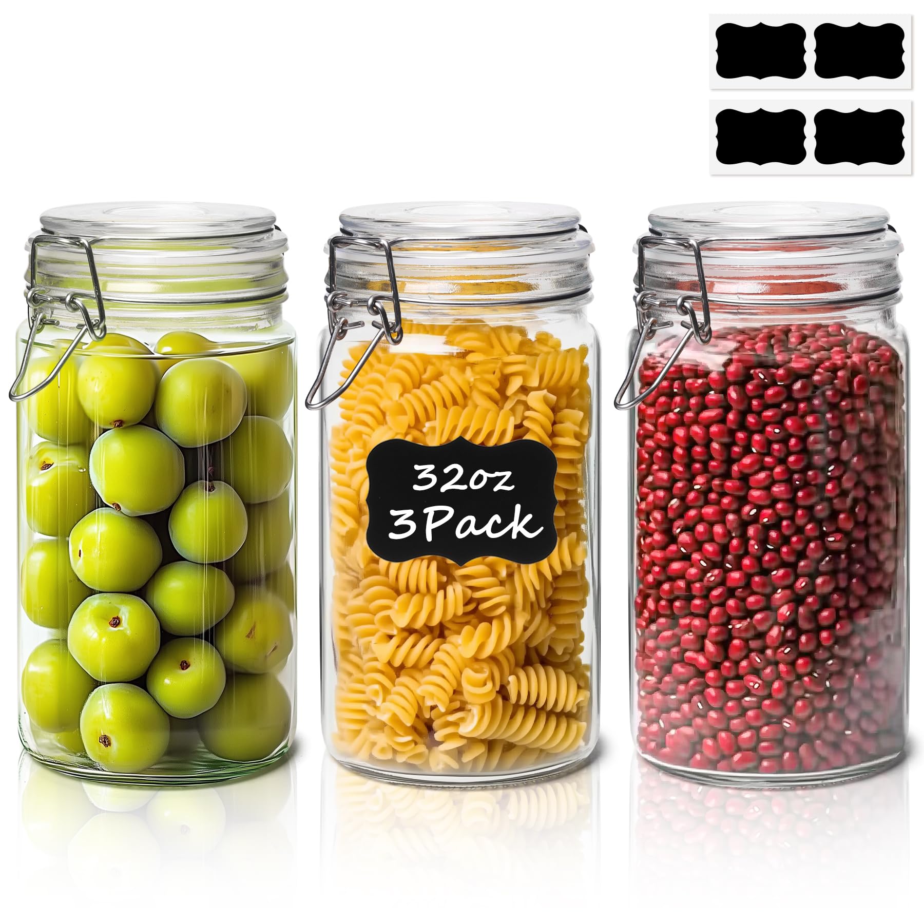 ComSaf Tarros de vidrio con tapa hermética juego de 3, tarros Mason de 32 onzas, tarro de conserva, tarro de conservas de 32 onzas