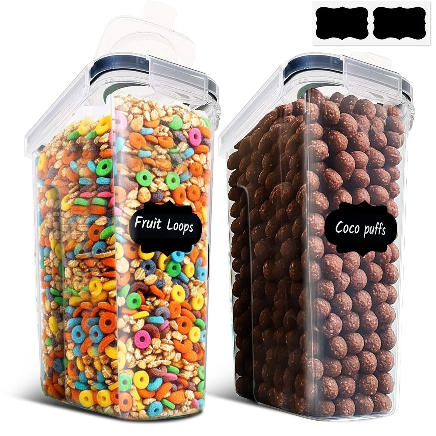 Contenedor de almacenamiento de cereales, paquete de 2 recipientes herméticos de almacenamiento de alimentos de 85 oz/2.5 L con ta