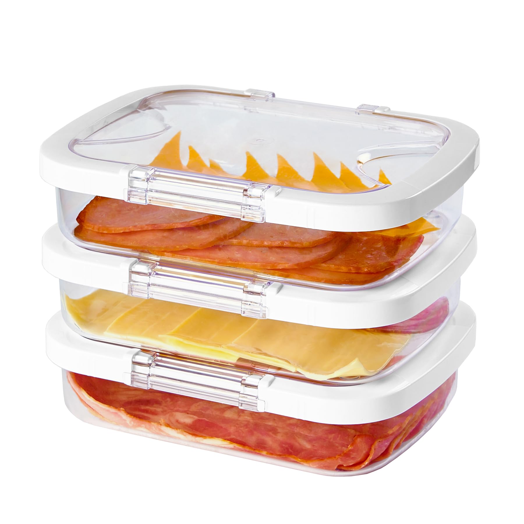 Felli Duo Loc Deli – Recipientes de carne para refrigerador con tapas herméticas, organizador de refrigerador apilable para almuer