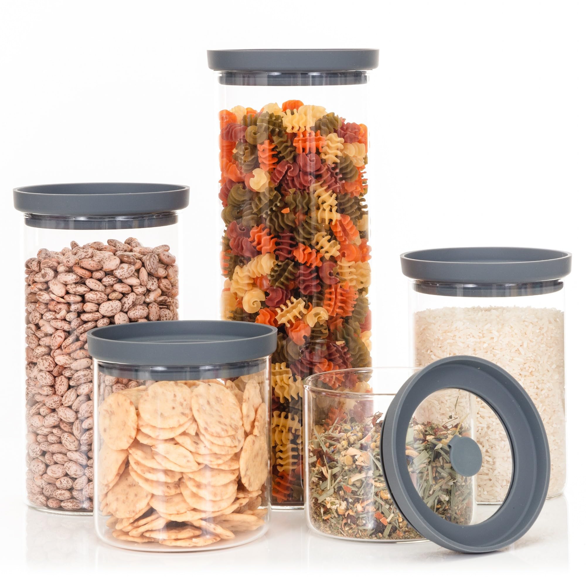 Recipientes con tapas, apilables, herméticos, para almacenamiento de alimentos, despensa de cocina, para aperitivos, dulces, sal,