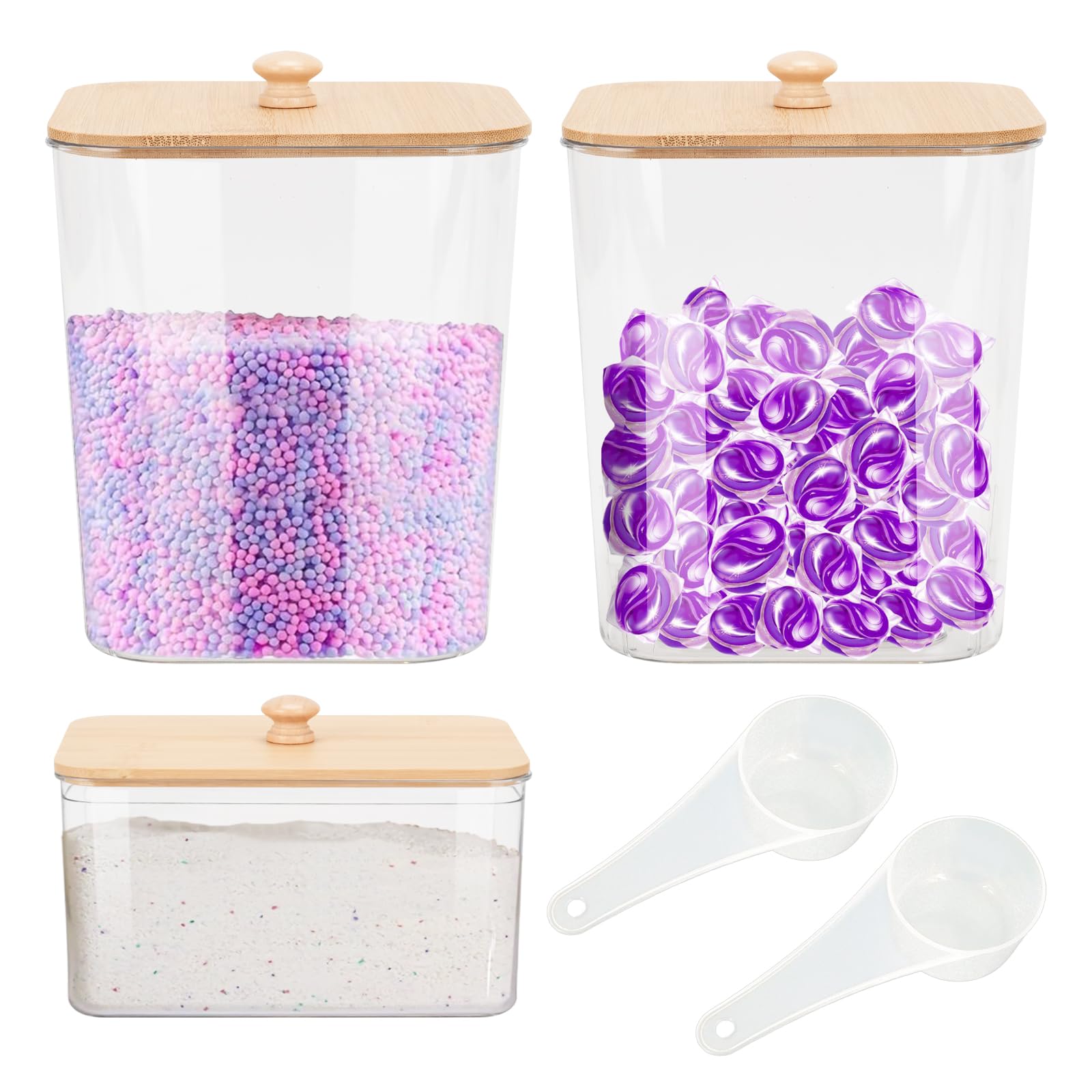 Juego de 3 recipientes herméticos grandes para organizar con tapas de madera, organizador de detergente a prueba para vainas, polv