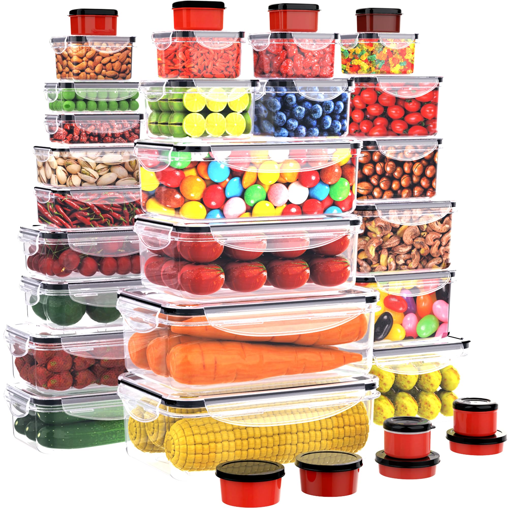 RockBerry Juego de 66 recipientes grandes de almacenamiento de alimentos con tapas herméticas, total de 645.0 fl oz (33 recipiente