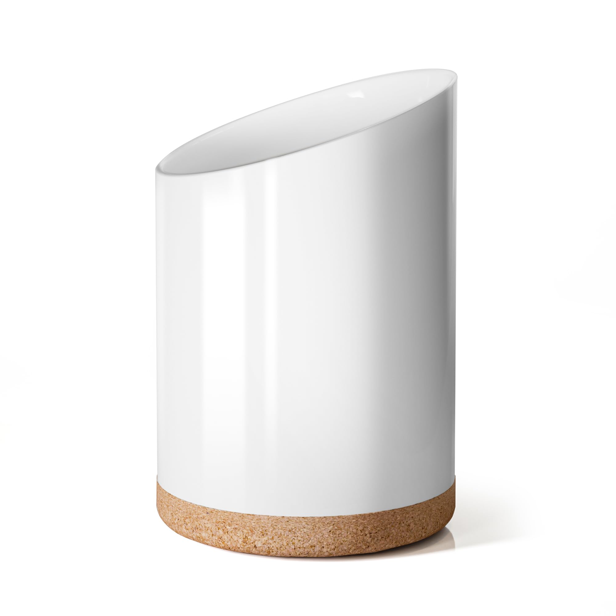 Soporte grande de cerámica para encimera de cocina, moderno recipiente con parte superior inclinada y tapete de corcho, para espát