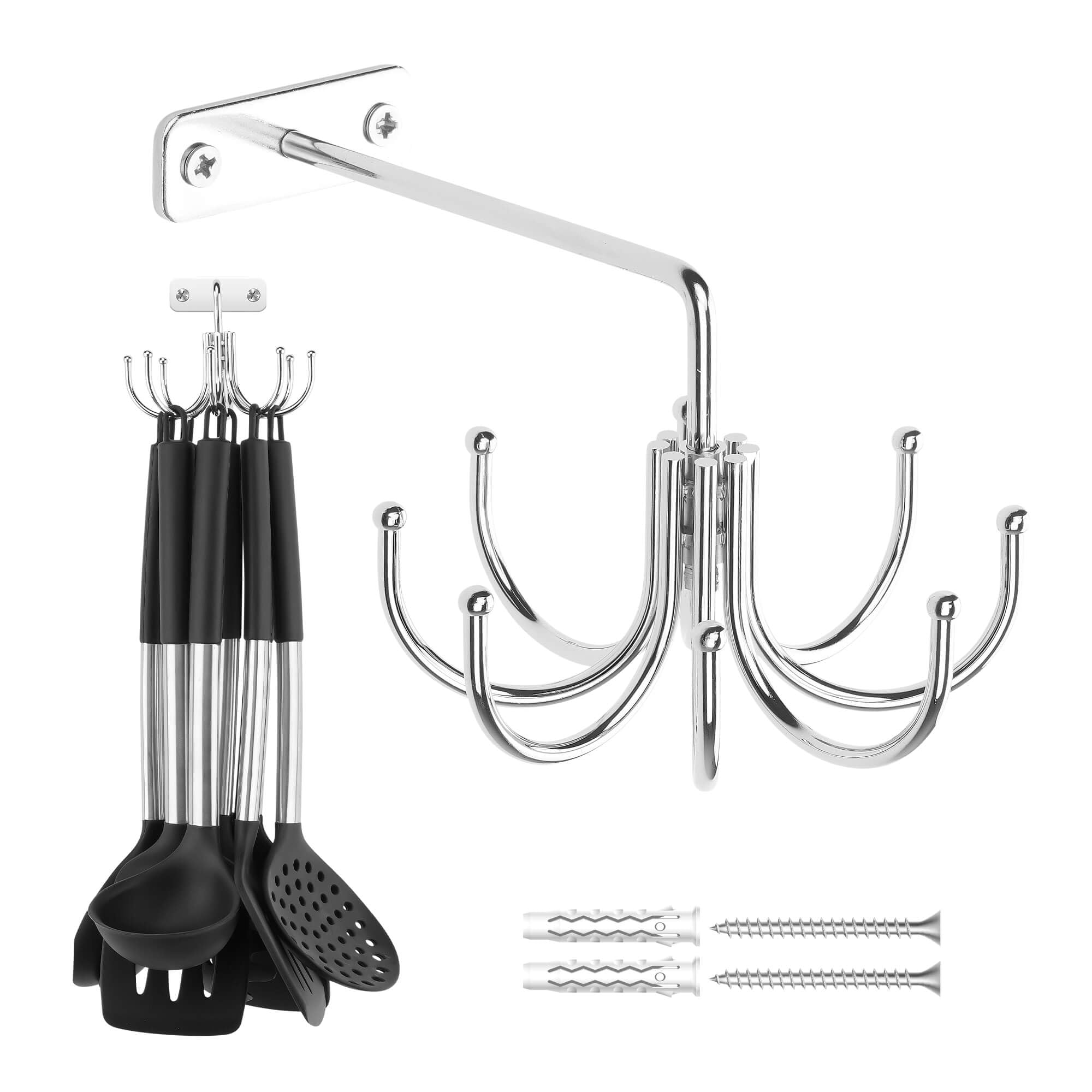ZEDODIER Soporte para utensilios de cocina, ganchos de cocina giratorios de 360° para colgar utensilios, estante de utensilios de