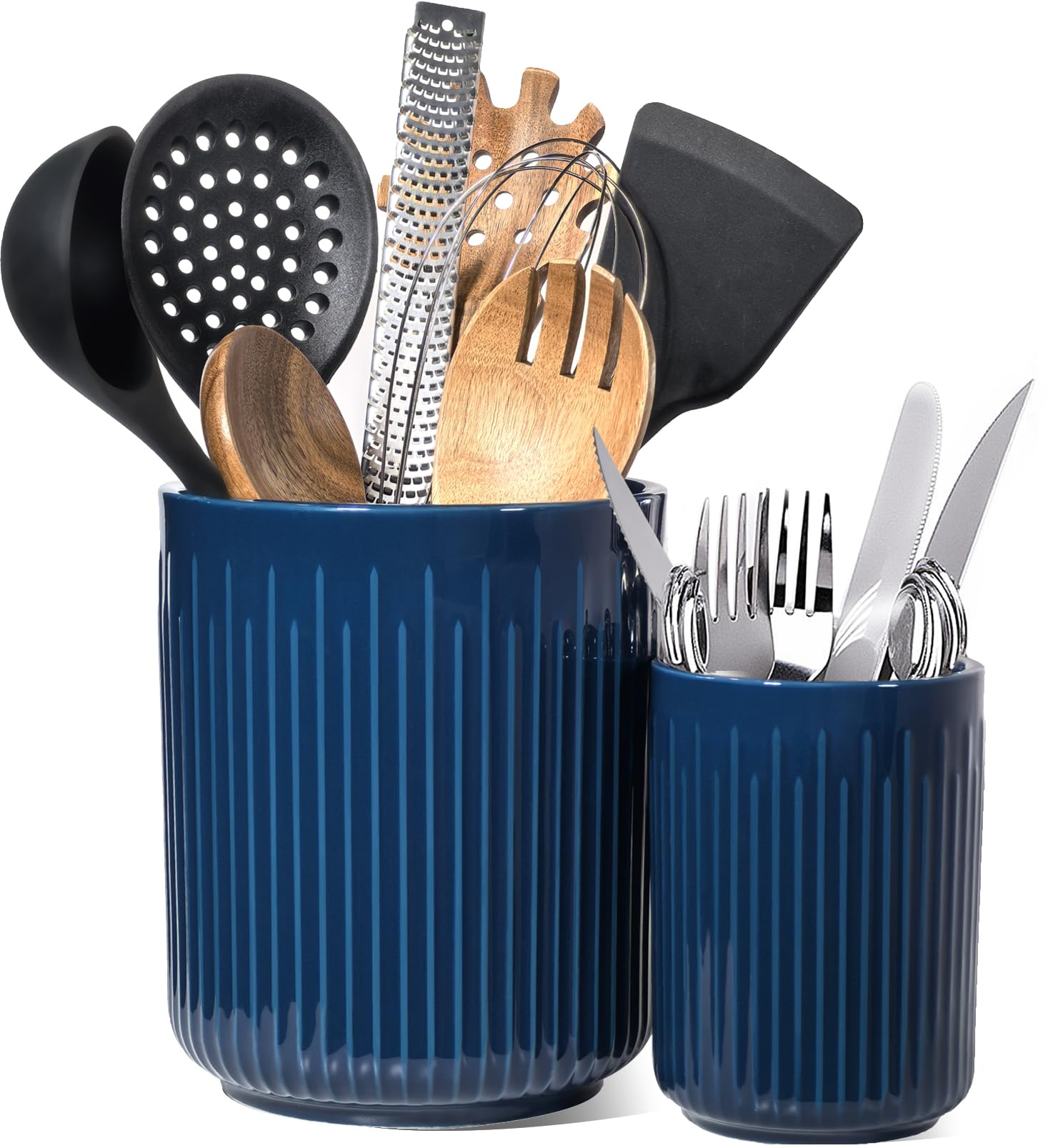 Soporte grande para utensilios de cerámica de 7.5 pulgadas + 5.5 pulgadas para encimera, organizador de utensilios de cocina para