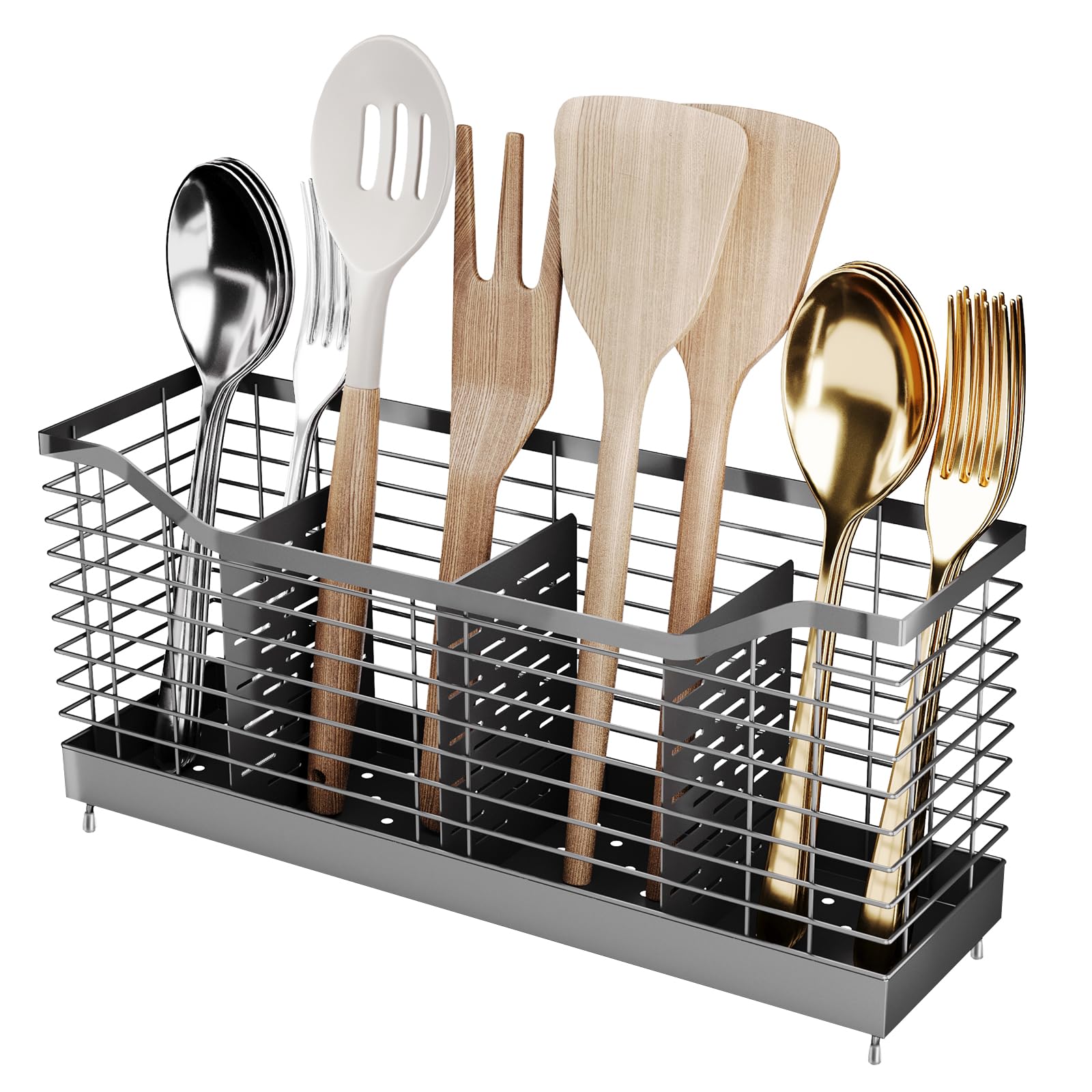 THYGIFTREE Soporte grande para utensilios para encimera de cocina, organizador de utensilios de 4 compartimentos para herramientas