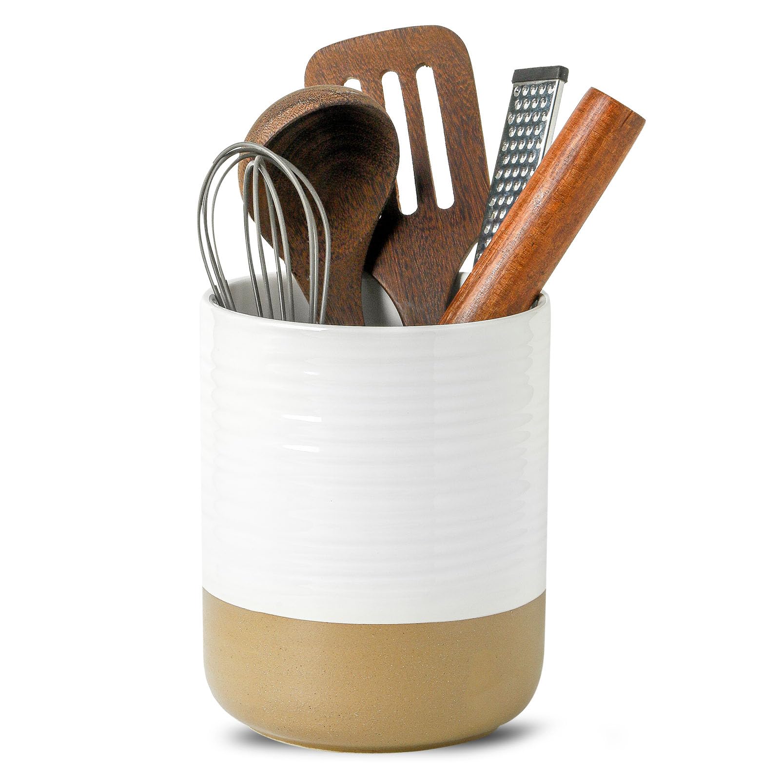 Morden – Soporte grande para utensilios de cocina, con rayas de cerámica, para encimera de cocina, organizador de utensilios de co