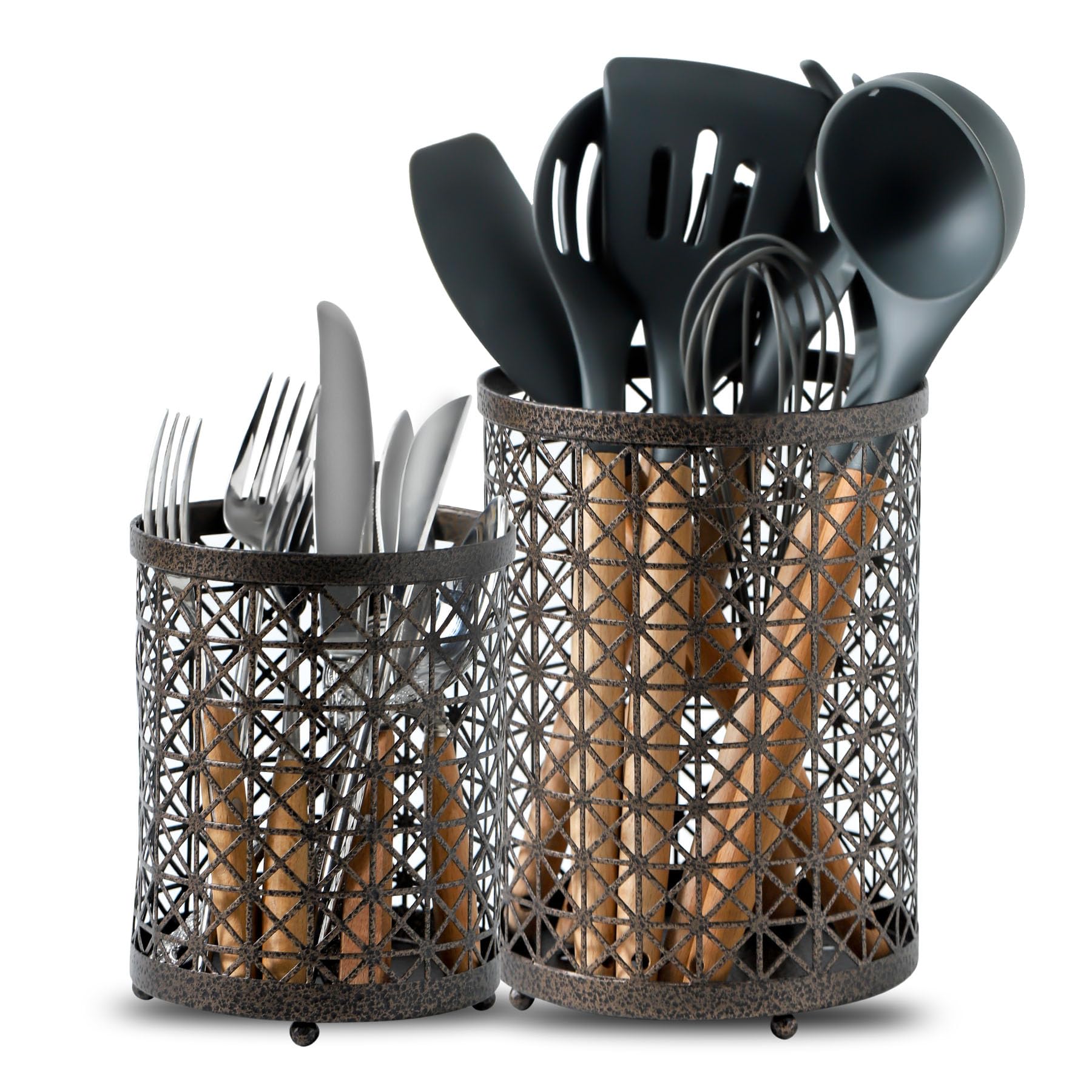 jogreful Soporte para utensilios, utensilios de cocina de hierro fundido para encimera, organizador de utensilios extra grande con