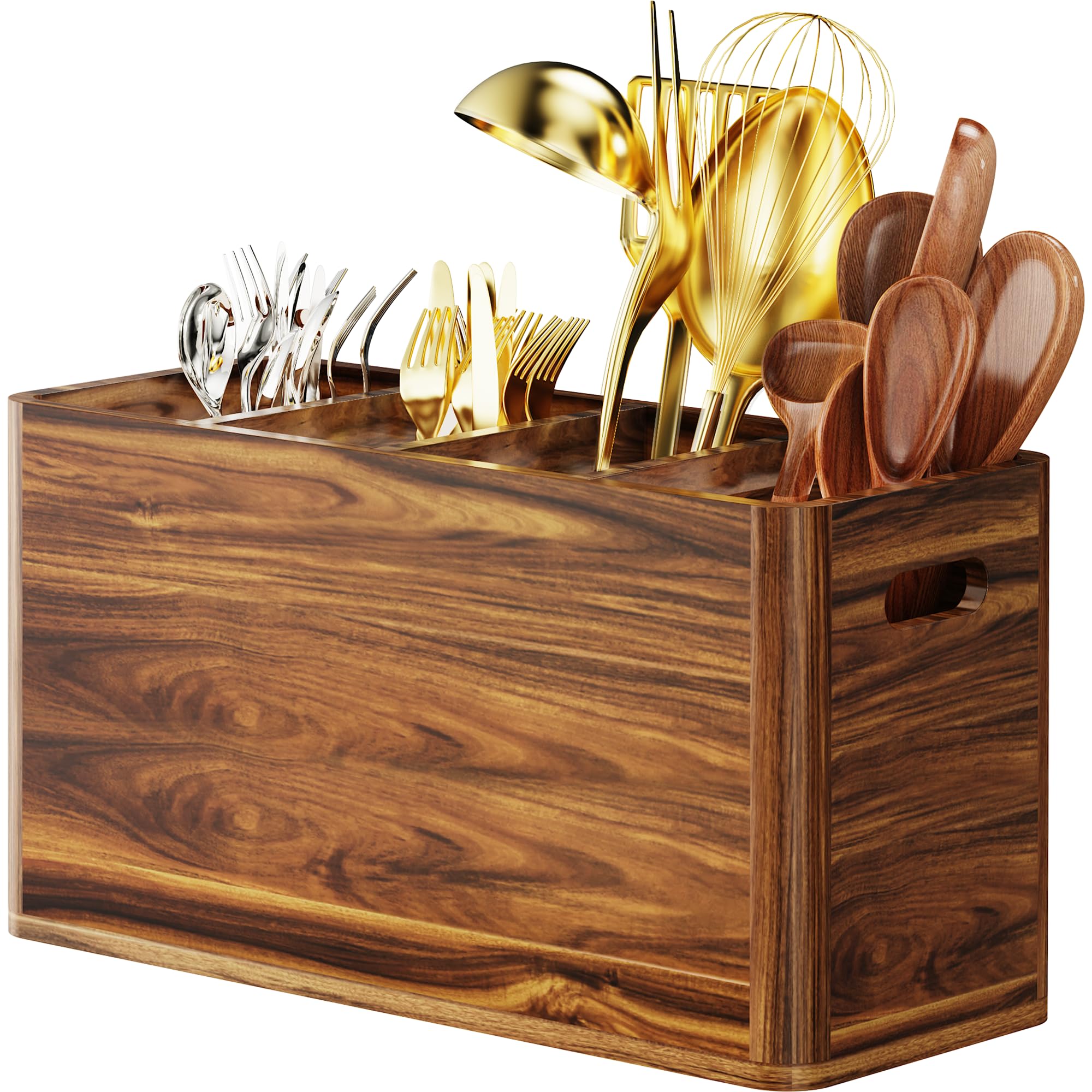 Organizador grande de utensilios de cocina para encimera o encimera, contenedor de almacenamiento de madera para cocinar y cubiert