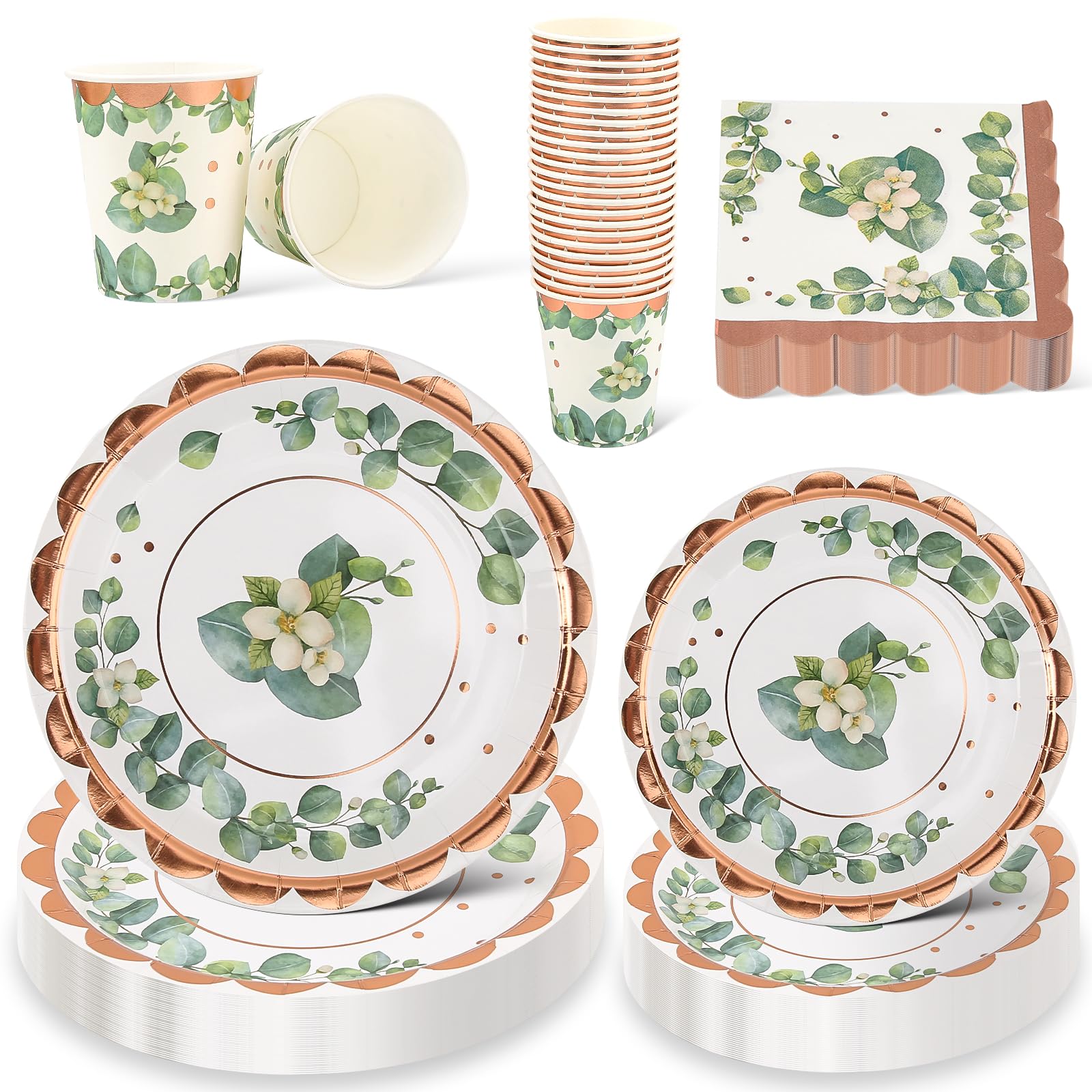 96 piezas de suministros florales para fiesta de despedida de soltera, juegos de platos de papel y servilletas, platos verdes para