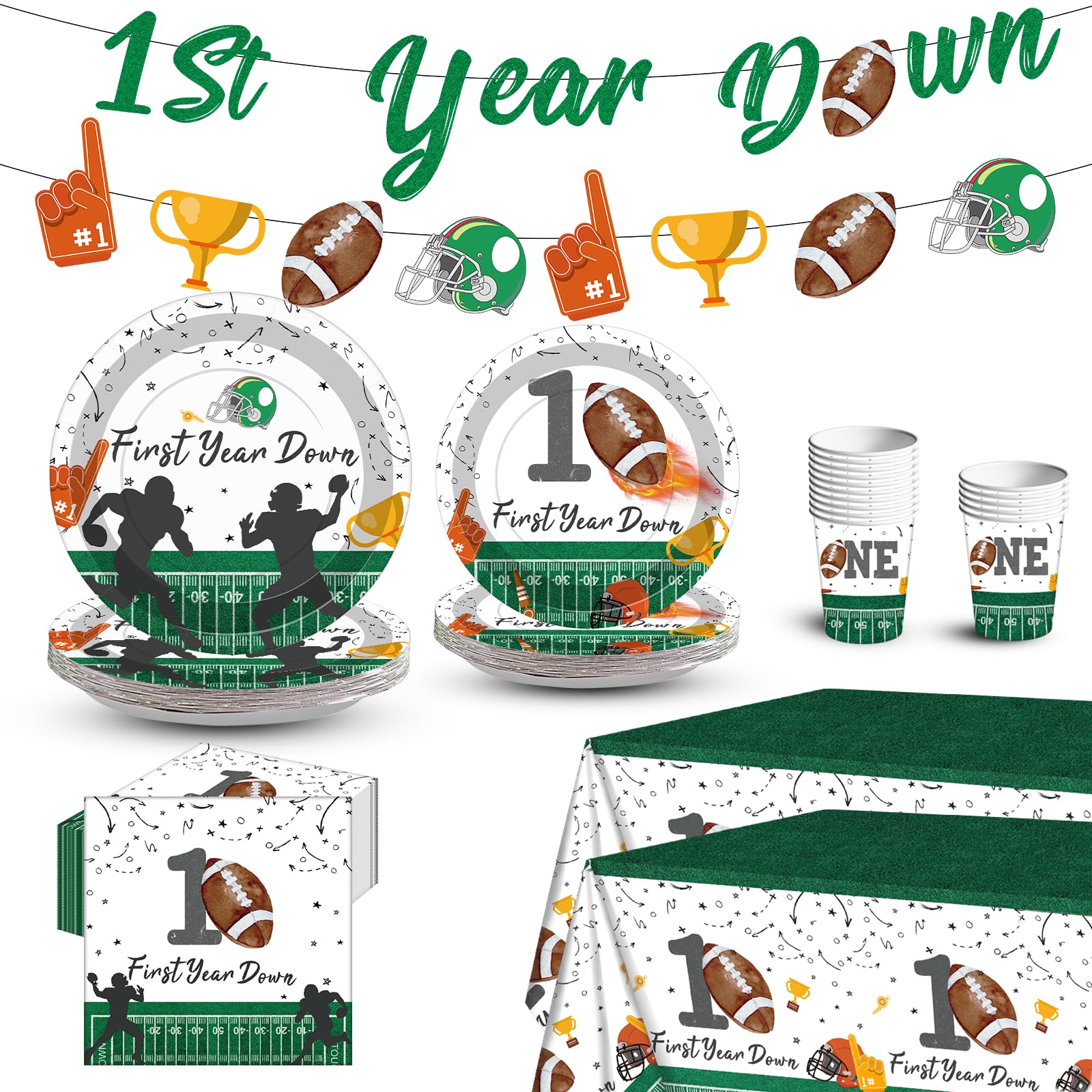 Decoraciones de fiesta de cumpleaños de primer año, decoraciones de cumpleaños de fútbol para niñas y niños, platos de fútbol, ser