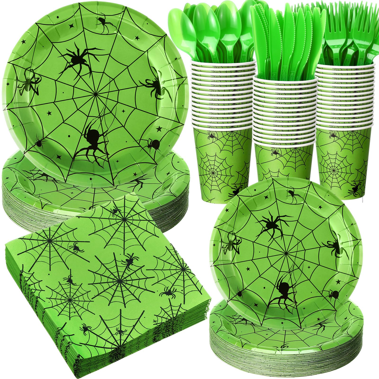 400 piezas de tela de araña de Halloween, suministros para fiestas, platos de papel desechables, servilletas y tazas de telaraña d