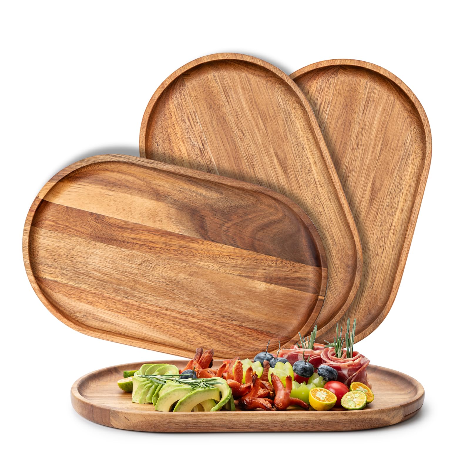 Juego de 4 bandejas de madera para servir, bandejas de madera de acacia, decoración del hogar, tabla de queso, platos para servir