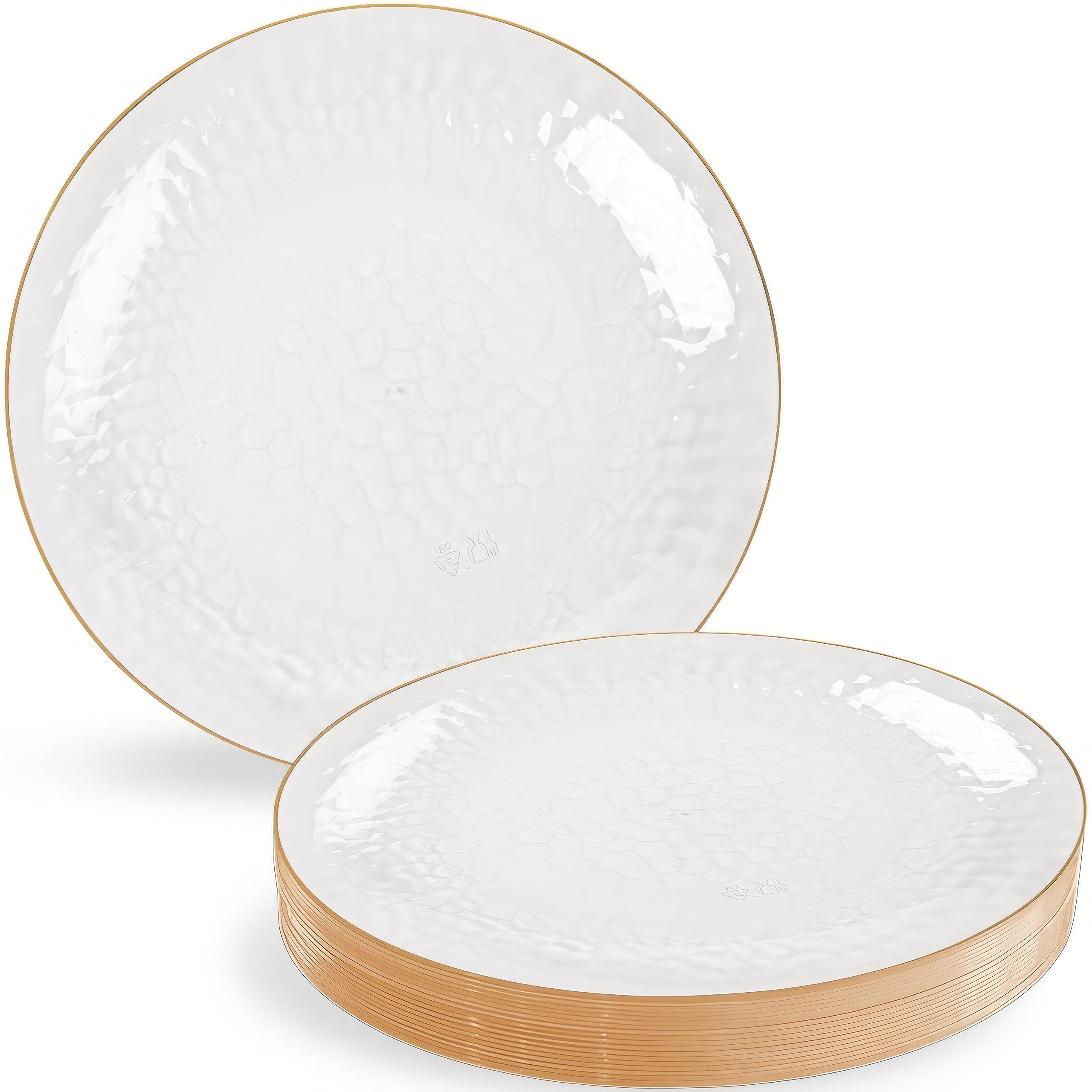 Blue Sky Combo de platos martillados transparentes orgánicos con borde dorado | 32 unidades (7 pulgadas, 16 unidades y 9 pulgadas