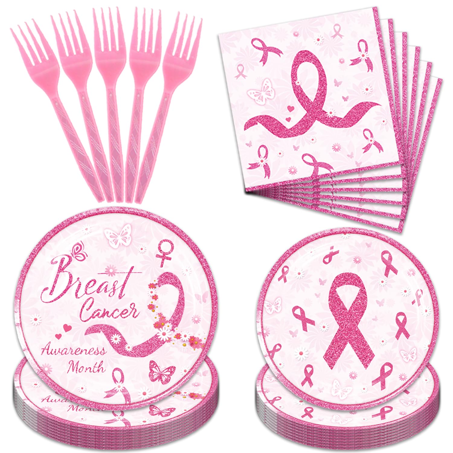 Paquete de 96 platos y servilletas de papel para cáncer de mama, platos de decoración de fiesta, suministros para el cáncer de mam