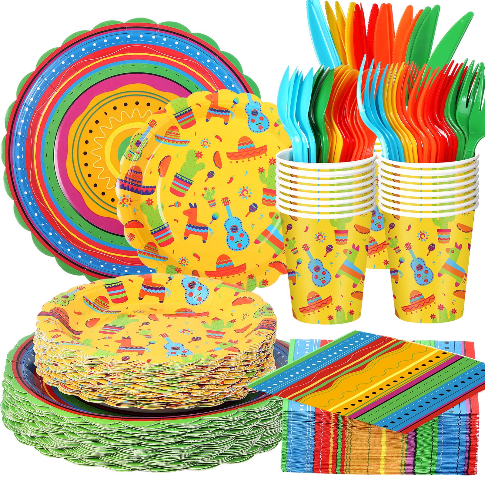 400 piezas de suministros para fiestas mexicanas, platos de papel desechables, servilletas y tazas mexicanas para decoración de cu