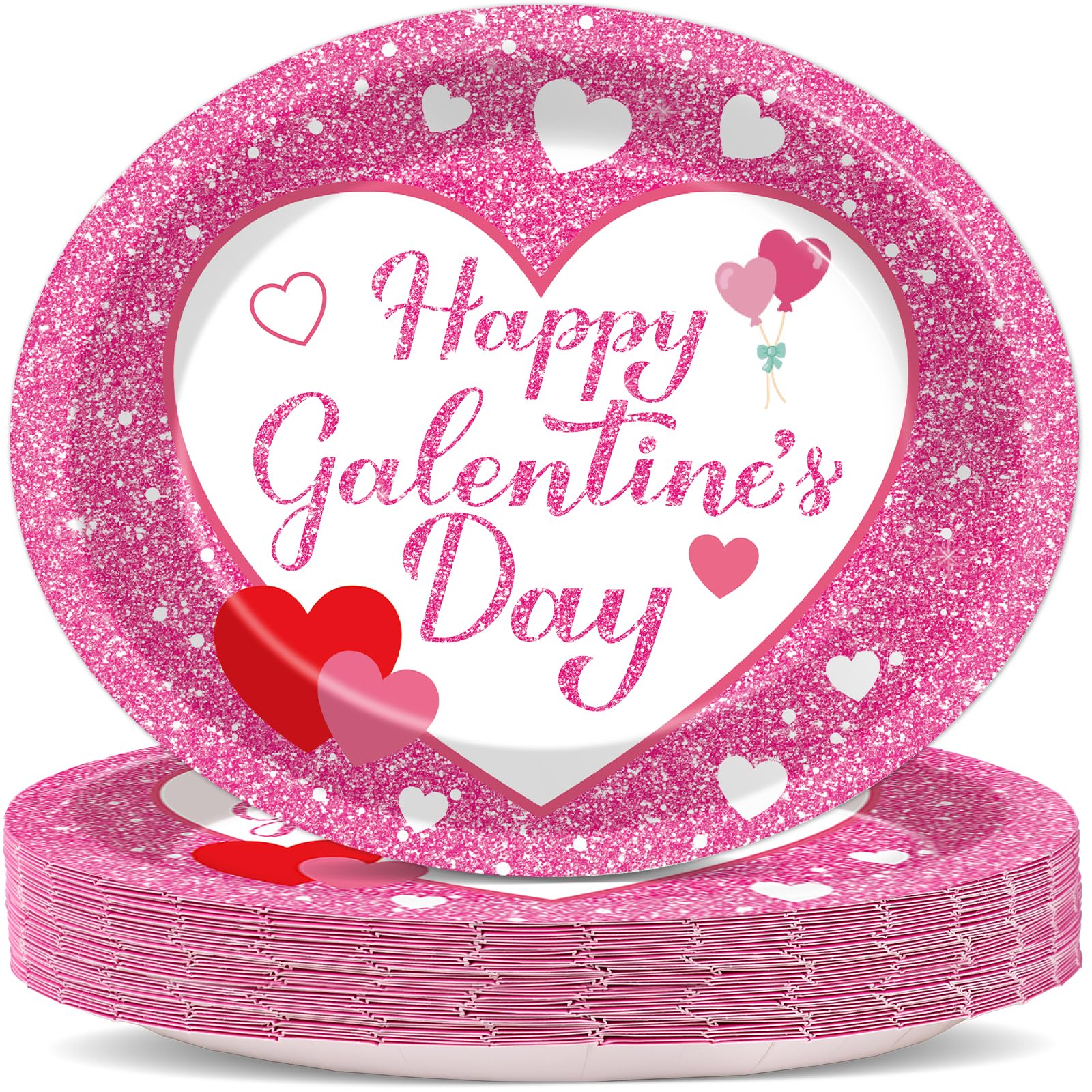 50 platos de fiesta del Día de Galentine con forma de corazón ovalado, platos de papel para decoración de galentinos, juego de vaj