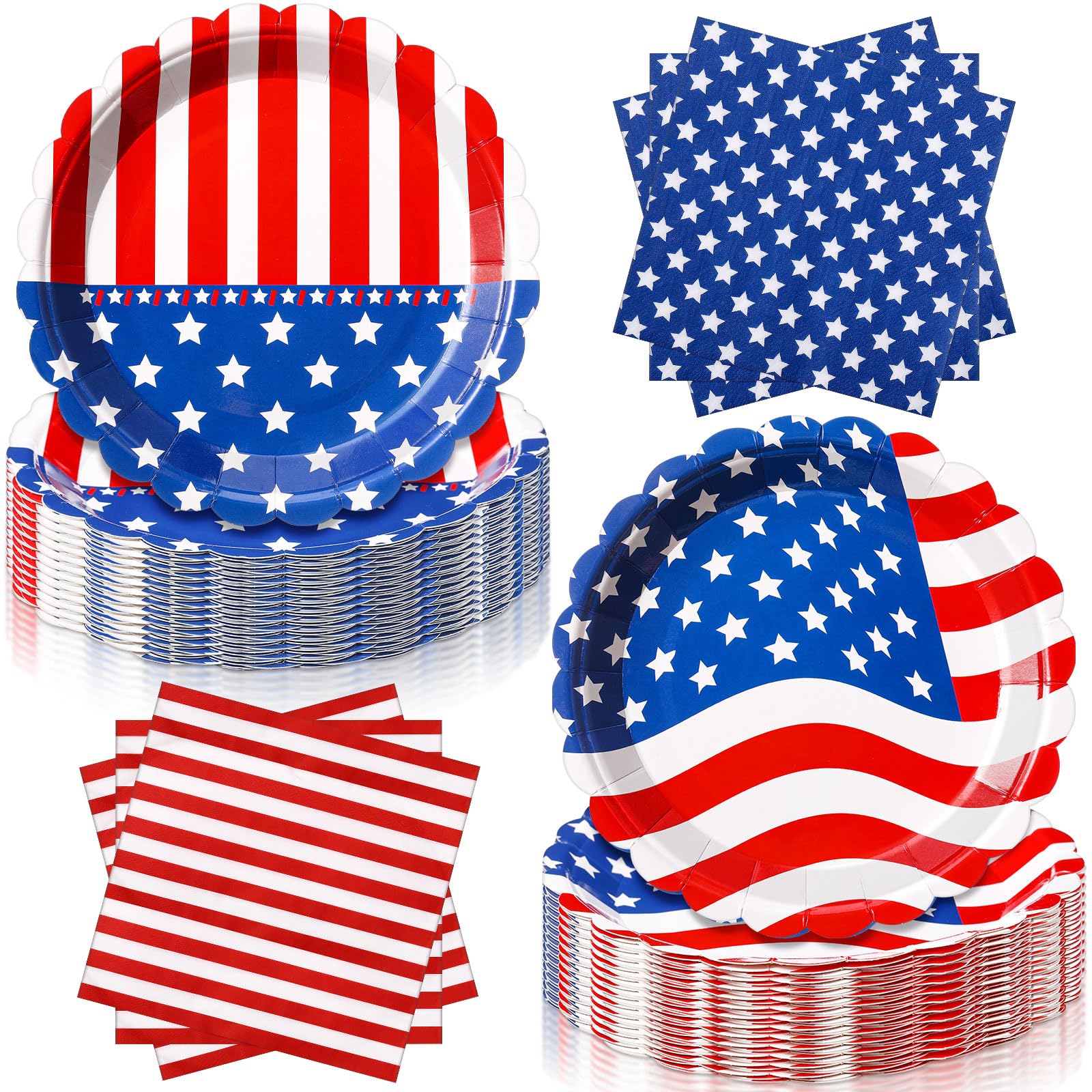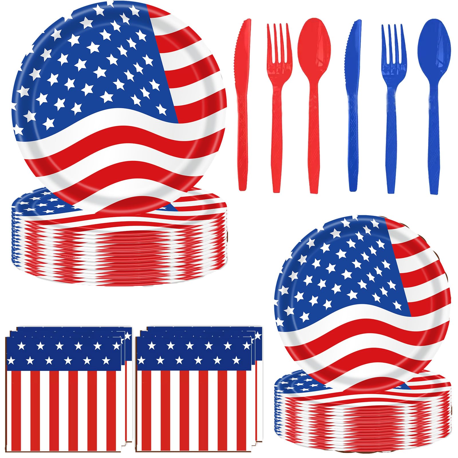 Juego de 80 piezas de vajilla patriótica del 4 de julio, vajilla desechable de la bandera estadounidense con platos de papel con p