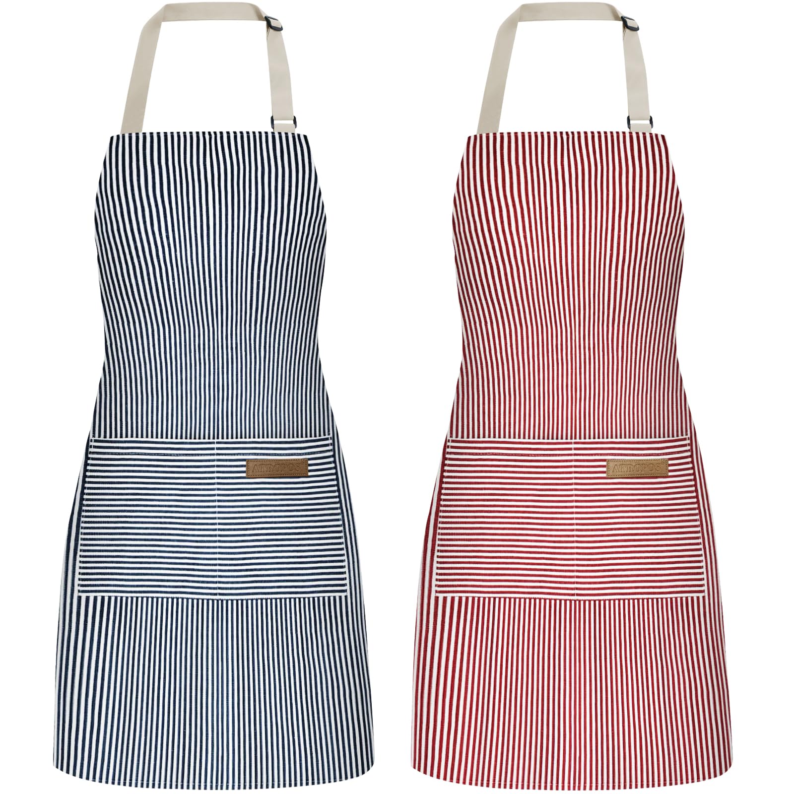 ATROPOS Paquete de 2 delantales para mujeres con bolsillos, delantales de cocina para mujeres y hombres, delantales de chef ajusta