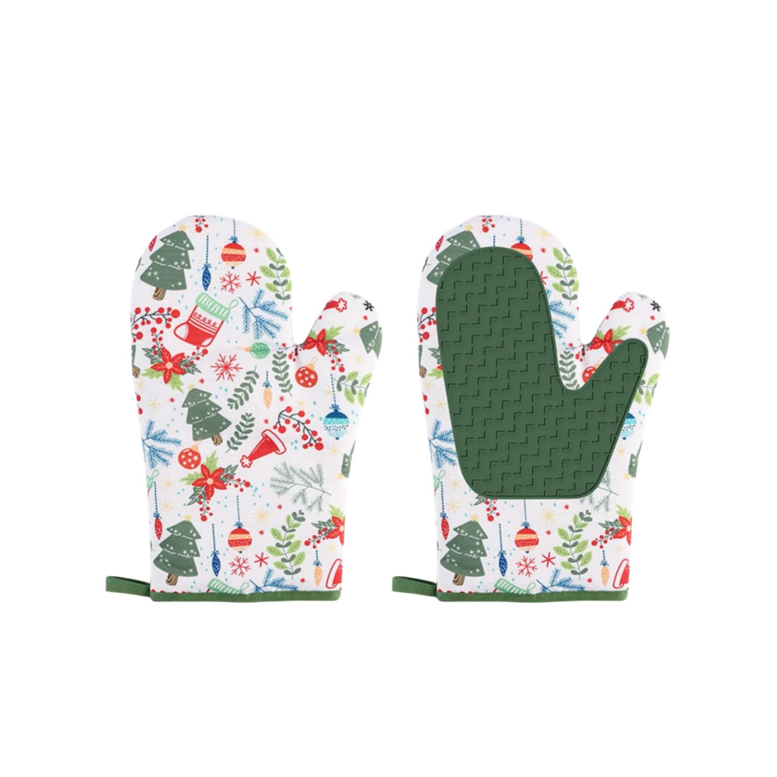 2-Piece Christmas Oven Mitts Set – Festive Design, 500°F Heat Resistant, Silicone Non-Slip – Stylish for Holidays & Daily Baking/C