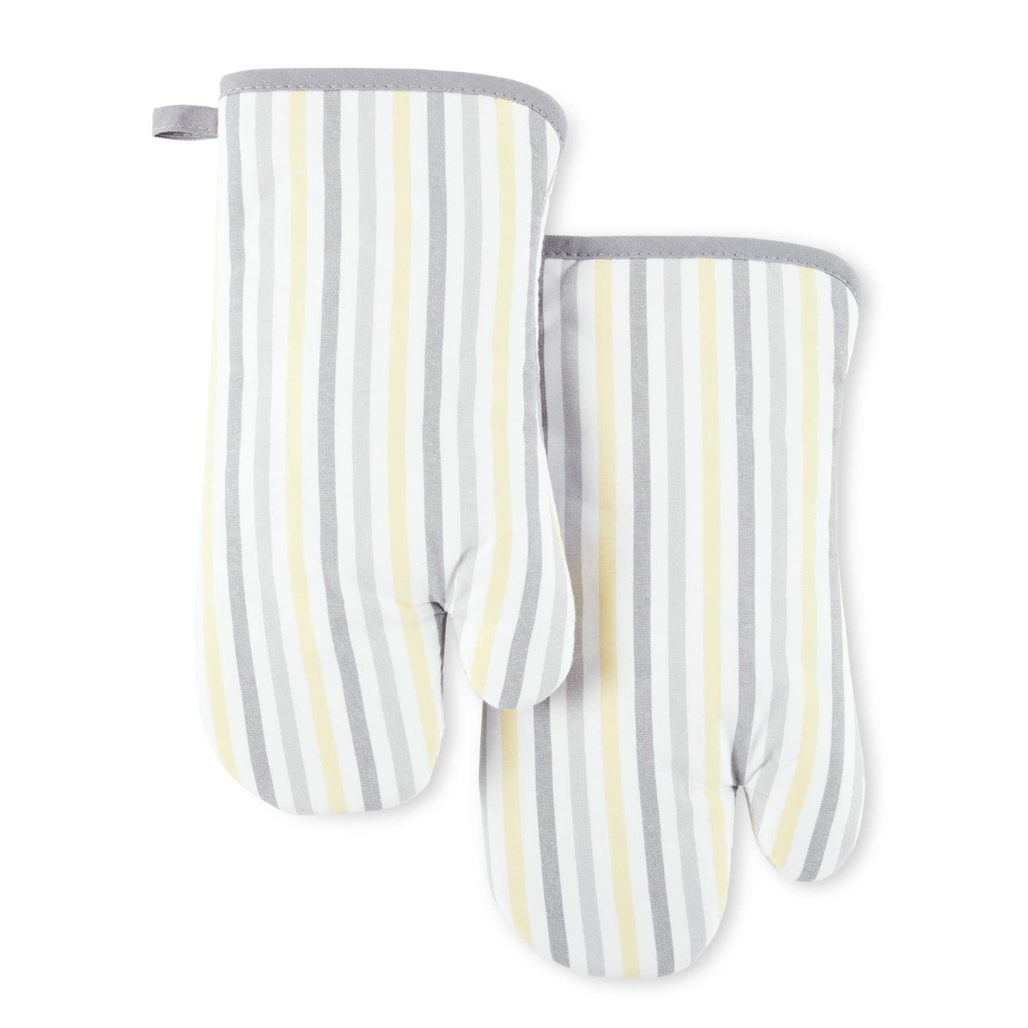 Martha Stewart Daisy Stripe – Juego de manoplas para horno, 7 x 13 pulgadas, gris/amarillo