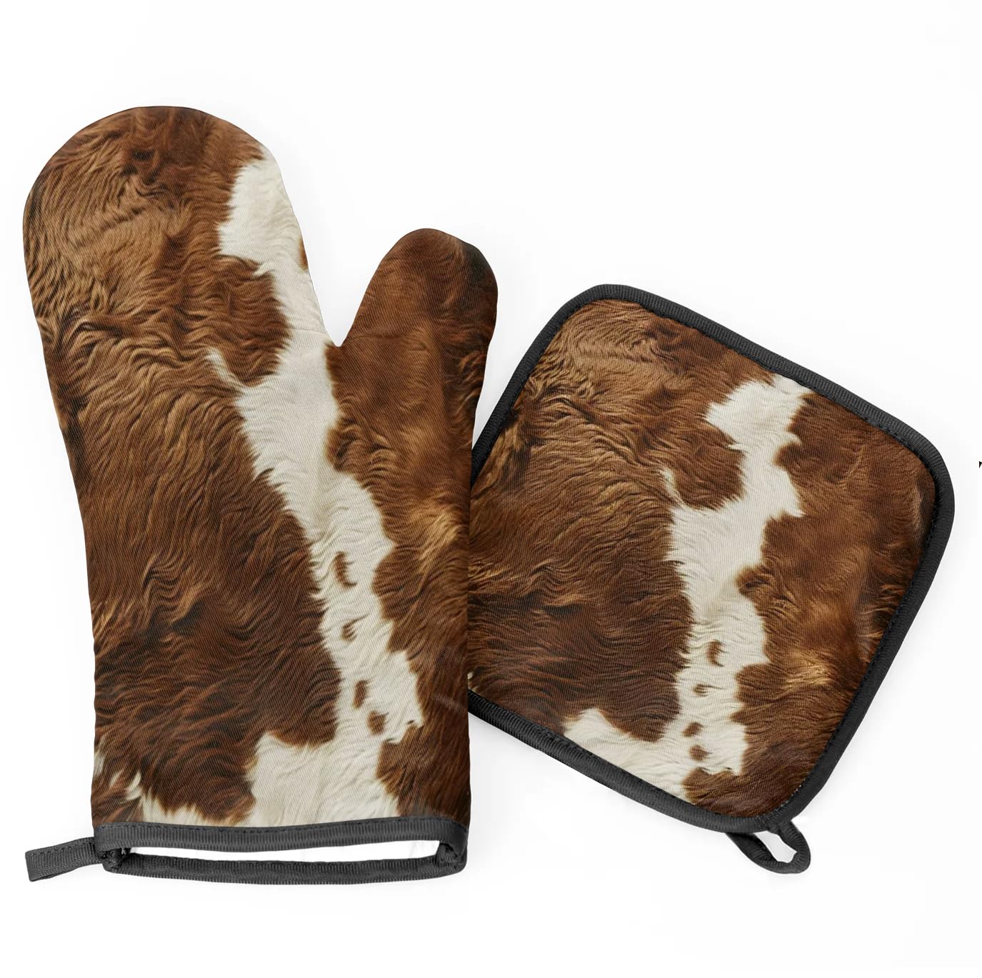 Juego de manoplas de horno y soportes para ollas, 2 piezas de guantes de horno de cocina decorativos de vaca para cocinar