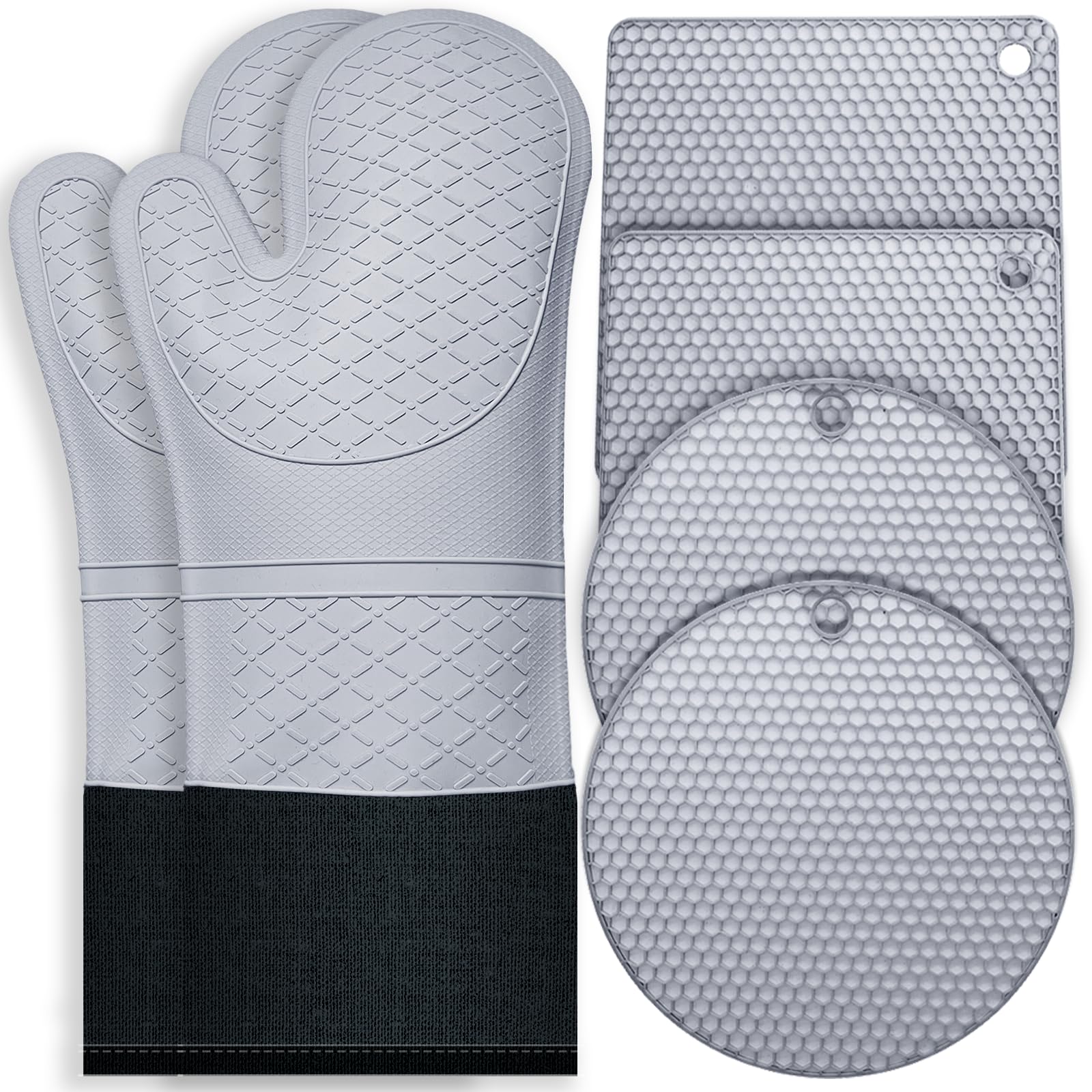 Juego de guantes de horno de silicona y soportes para ollas, guantes de horno extralargos resistentes al calor con almohadillas ca