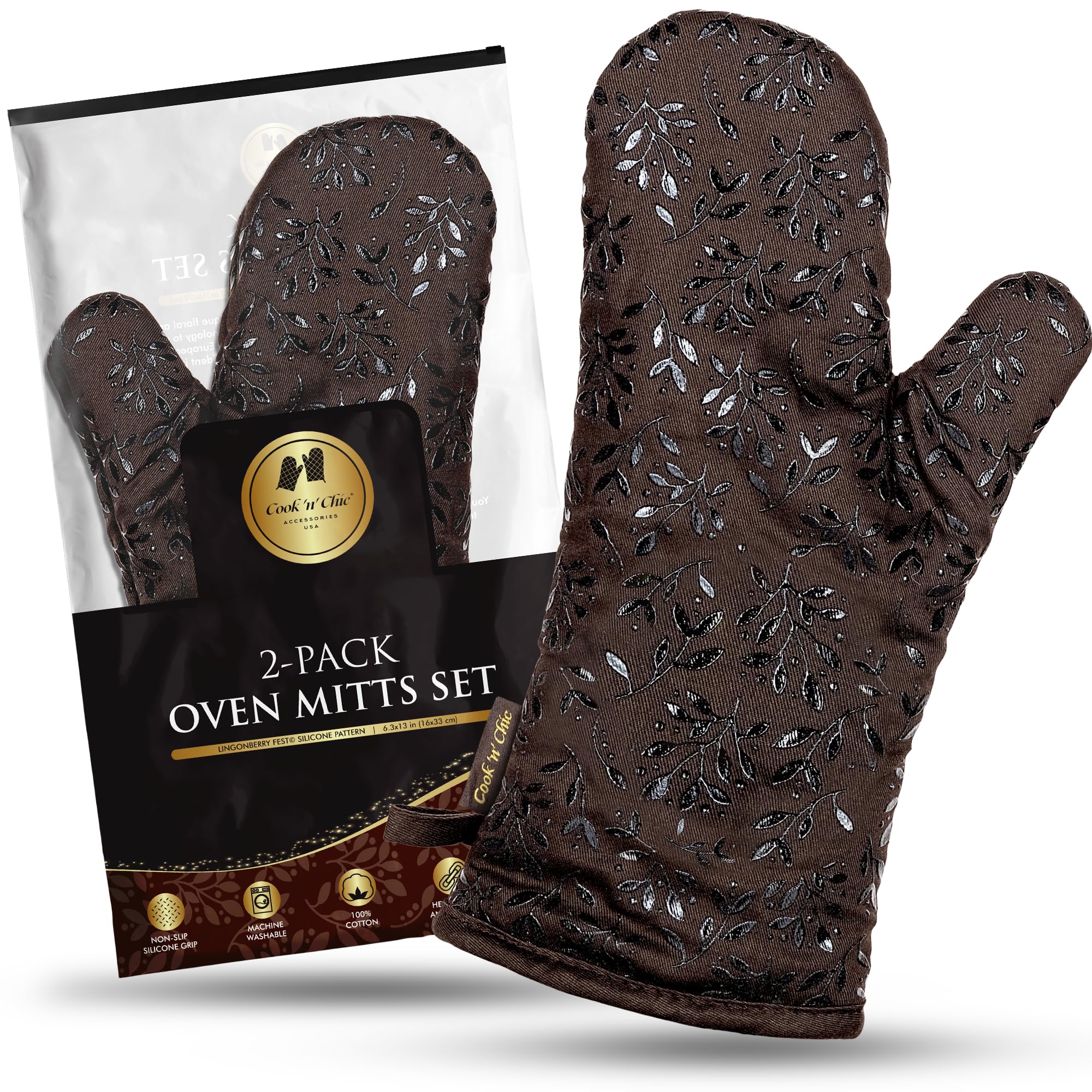 Cook’n’Chic – Guantes de horno resistentes al calor, elegantes y hermosos, agarre de silicona platino antideslizante, largos y gru