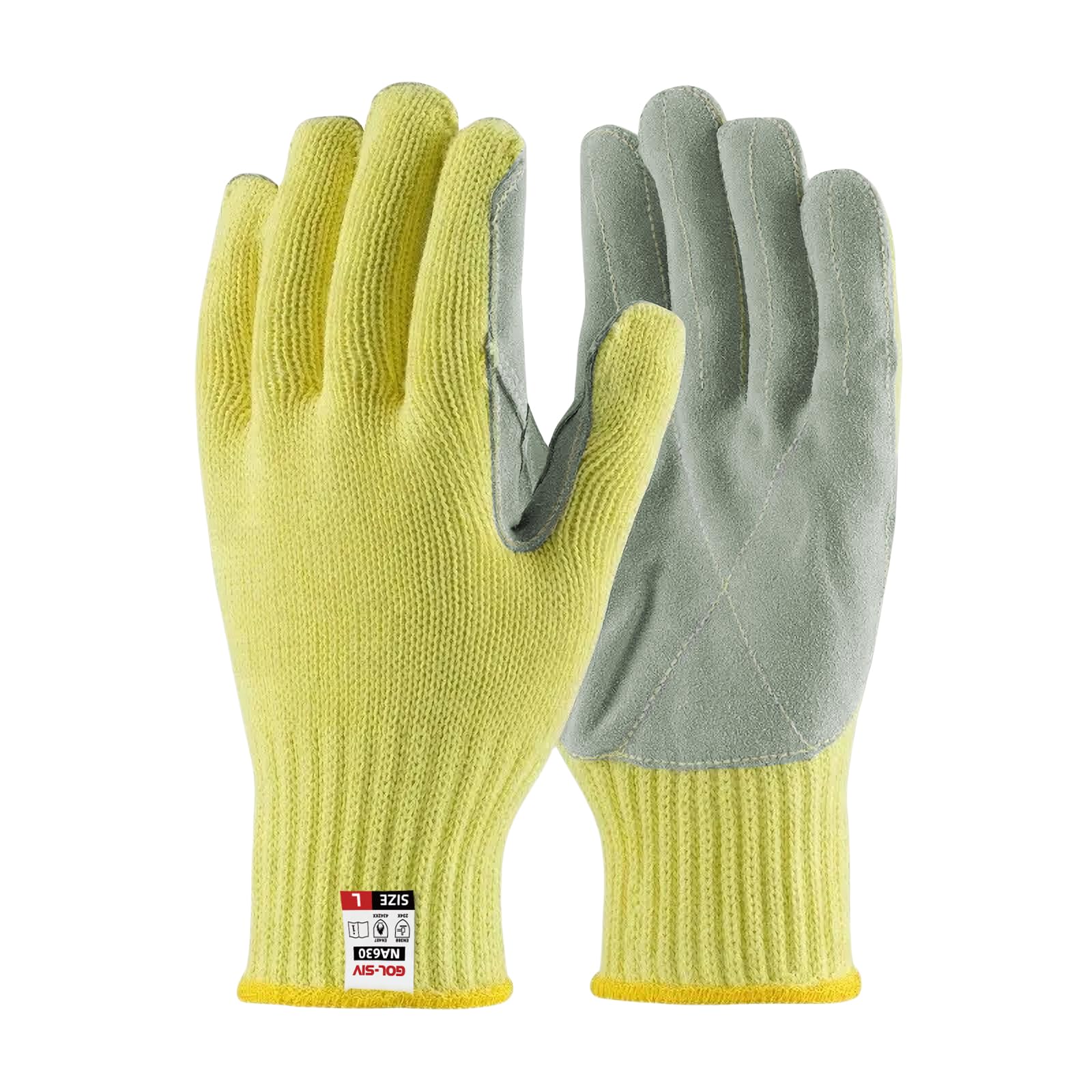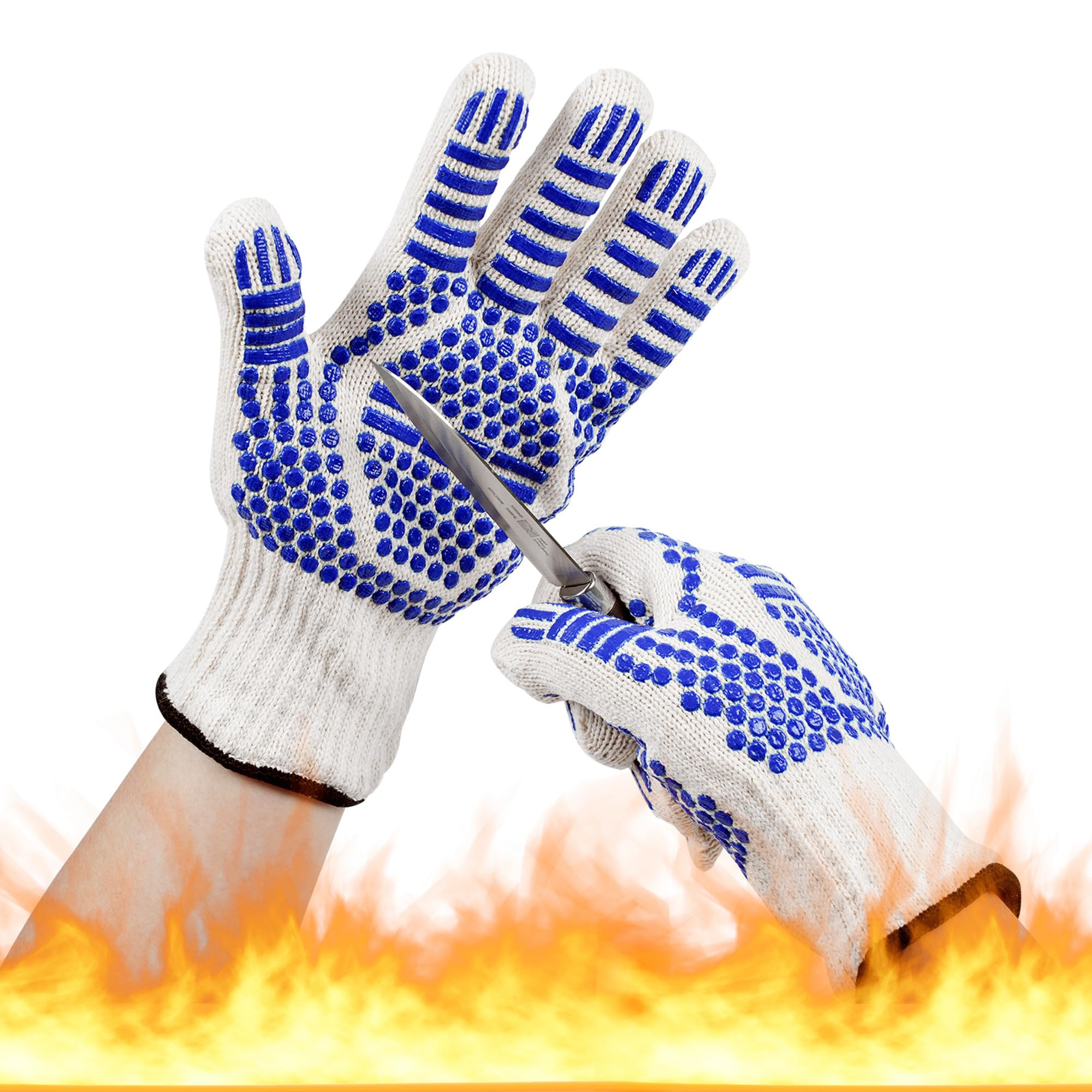 Guantes resistentes a cortes de calor, guantes de horno de cuero de aramida con dedos, resistentes al calor hasta 450 °F, diseño d