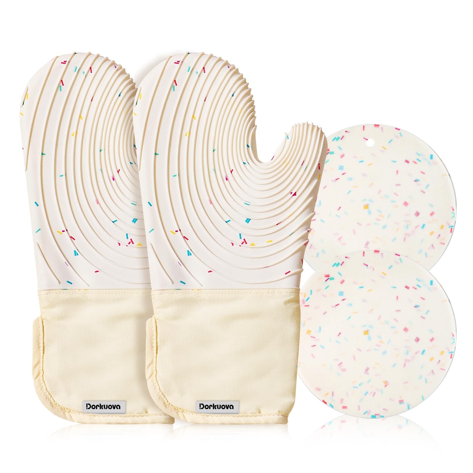 CARTMAN Juego de guantes de horno de silicona y soportes para ollas, resistentes al calor y al deslizamiento, impermeables, guante