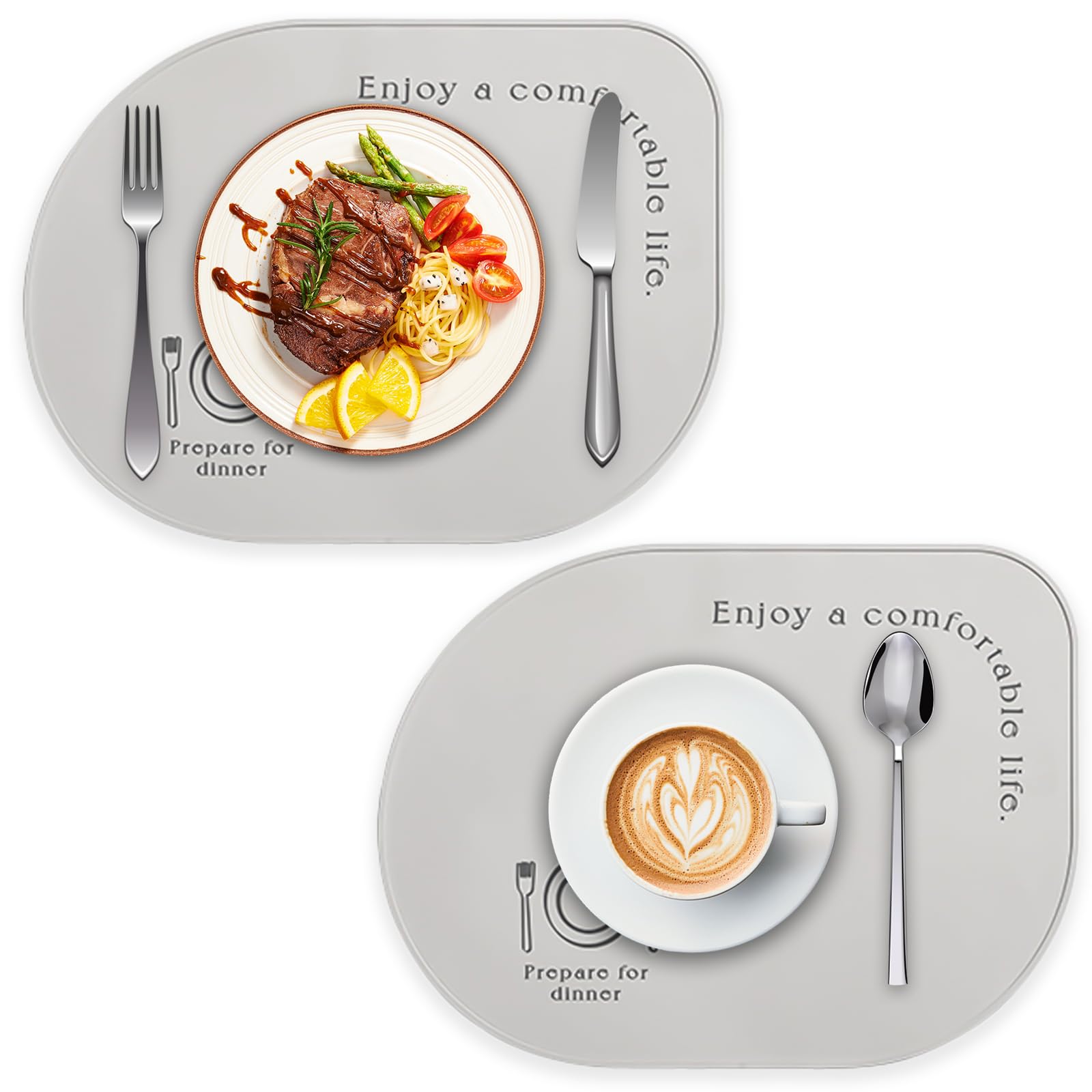 Paquete de 2 manteles individuales de silicona, antideslizantes, a prueba de aceite y agua, resistentes al calor y a las manchas,