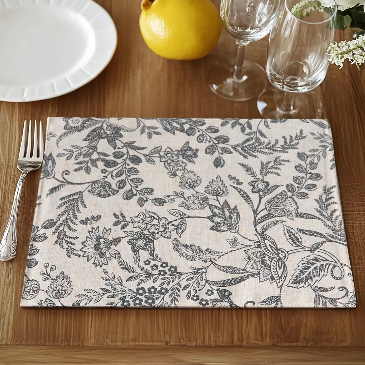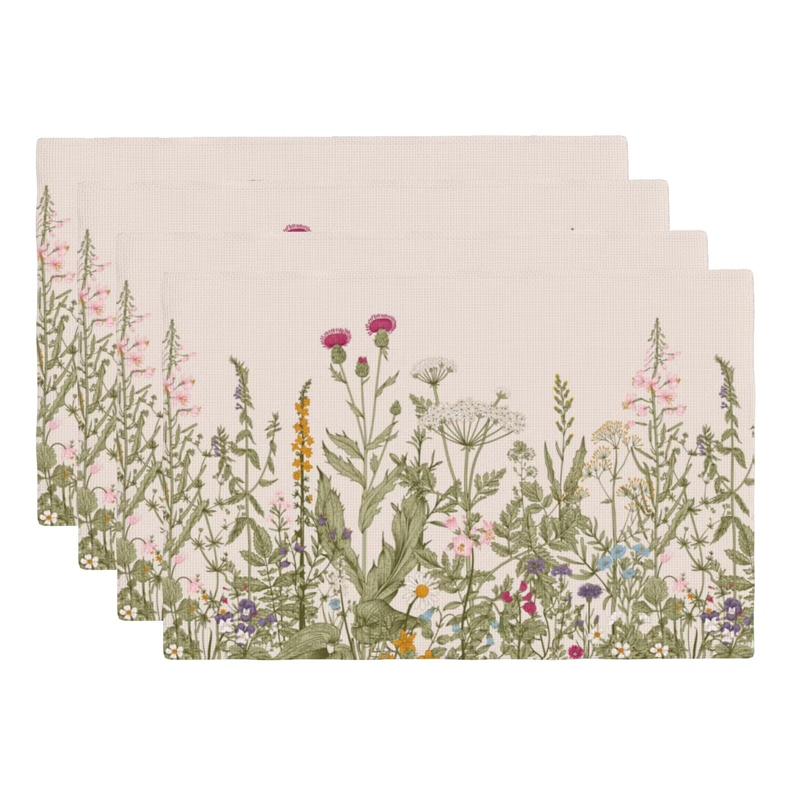 Juego de 4 manteles individuales de lino floral antiguo y flores silvestres, lavables, para cocina, comedor, resistente al calor,