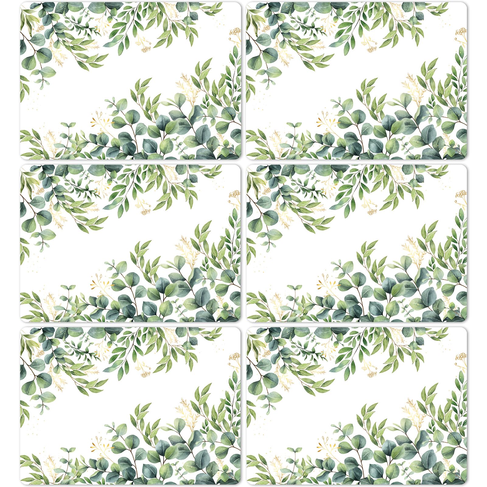 Juego de 6 manteles individuales con diseño de hojas de eucalipto, de plástico de verano, con temática de hojas verdes primaverale