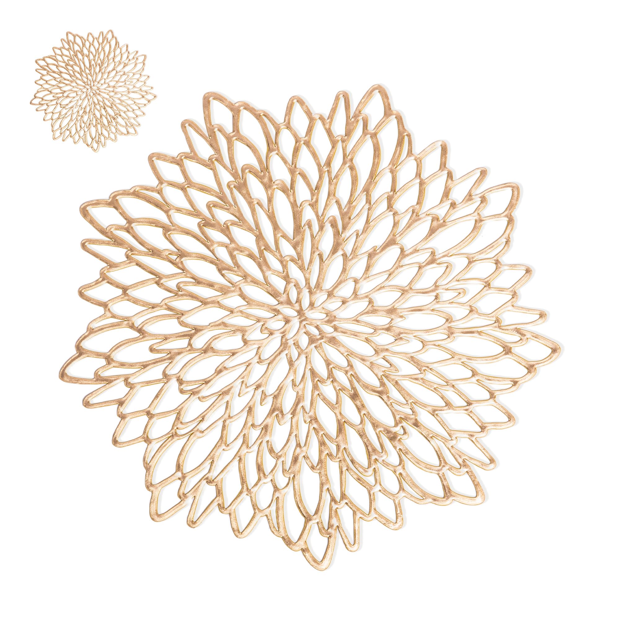 Juego de 18 manteles individuales y posavasos redondos dorados, 36 piezas a granel, manteles de vinilo con diseño de hojas, perfec